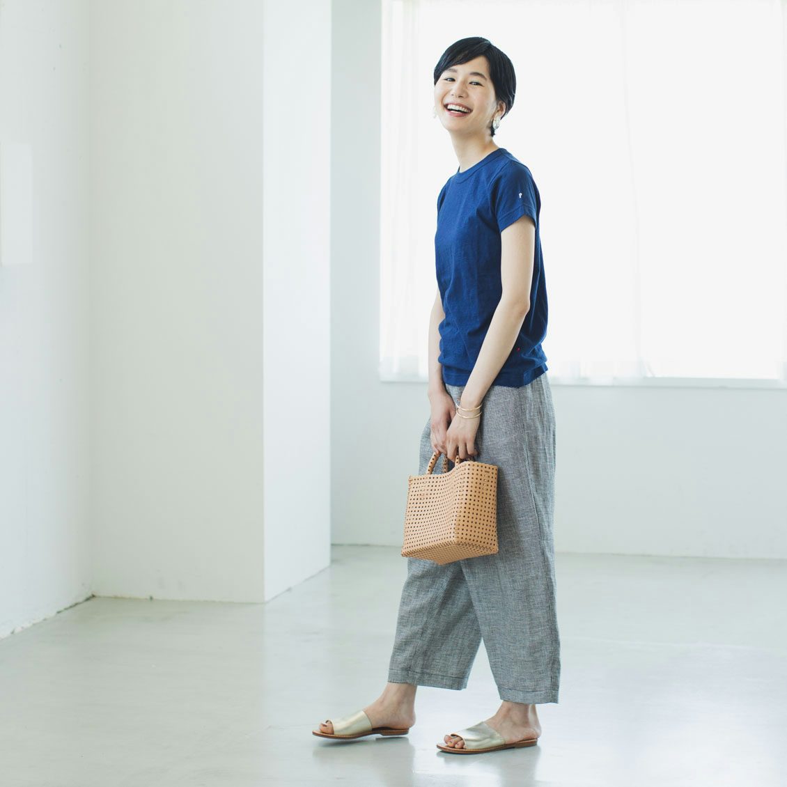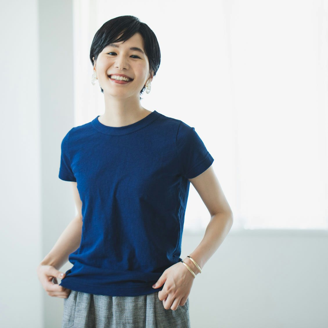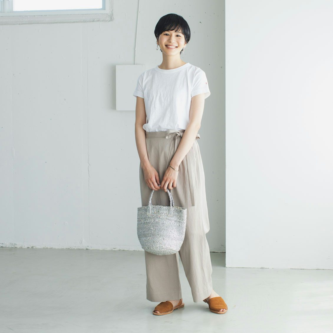 ラフなTシャツスタイルでも、ほのかな上品さが漂う。ひと味違う、こだわりのシルエットです。