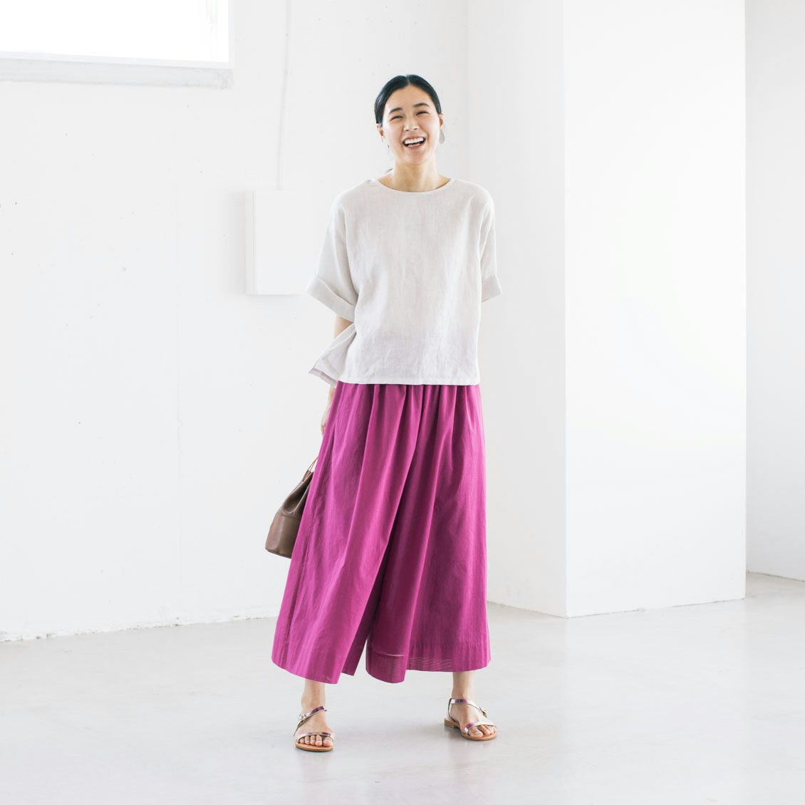 スカートっぽい着こなしにチャレンジしたいという方にも、気軽に手に取りやすい一枚です。