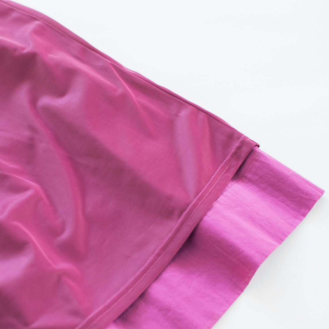 表地は、風を感じる薄手のコットン100%。そして透けが気にならないように、長めの裏地をつけています。軽やかな見た目になるよう、裾部分だけが透ける長さにもひと工夫。