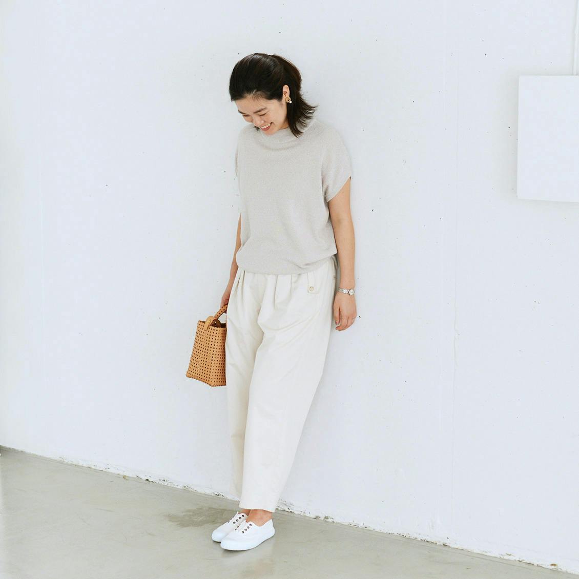 紐がないので、片手でするっと履けるスリッポンは、気負いなく使うのにぴったり。ちょっとそこまでのお出かけに重宝します。