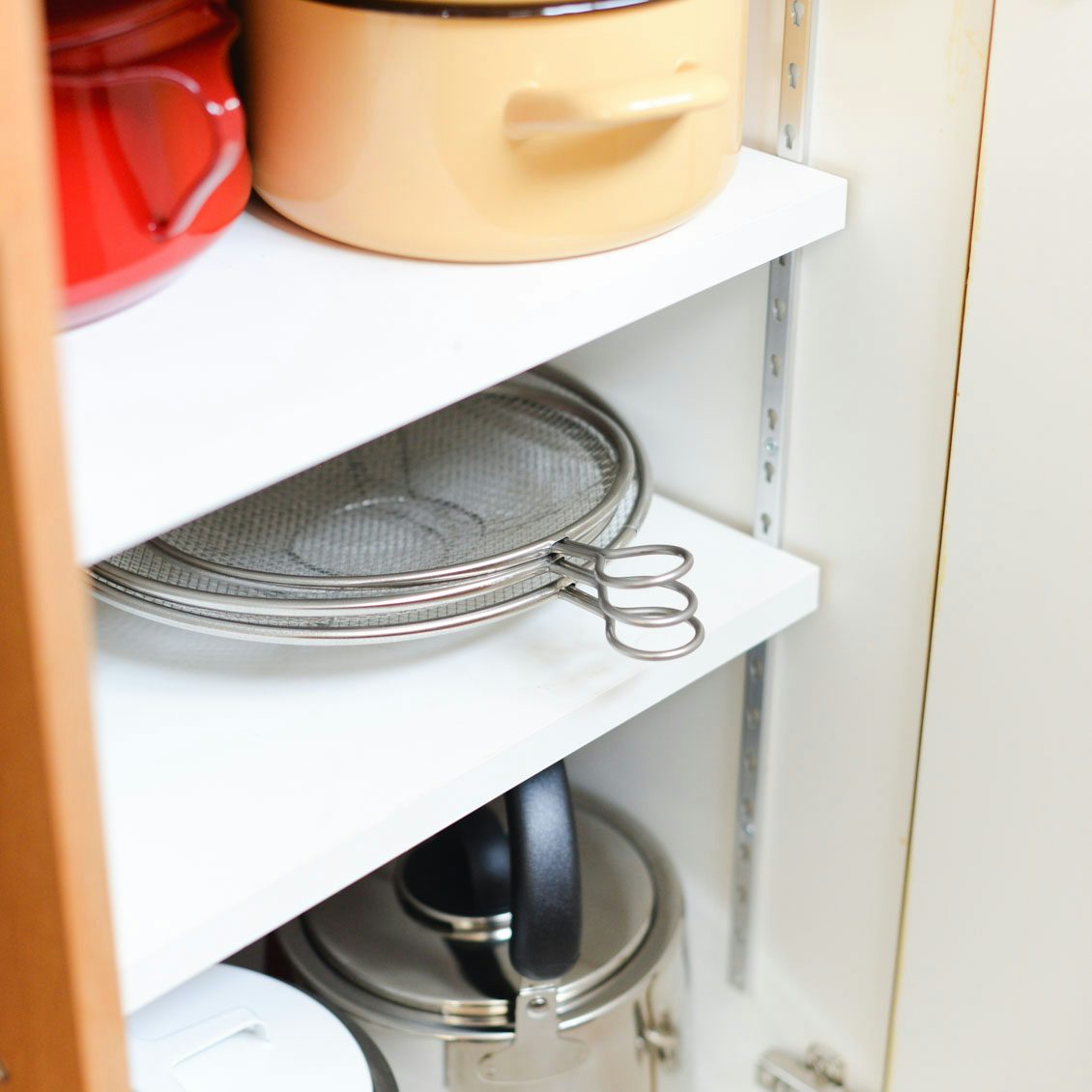 平らな形状なので、鍋でも皿でもボウルでも、目についたものでさっと水切りや湯切りをすることができ、限られたキッチンスペースを有効に使えます。