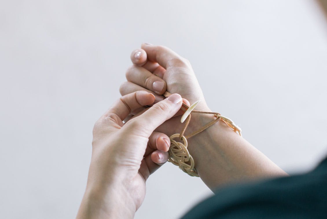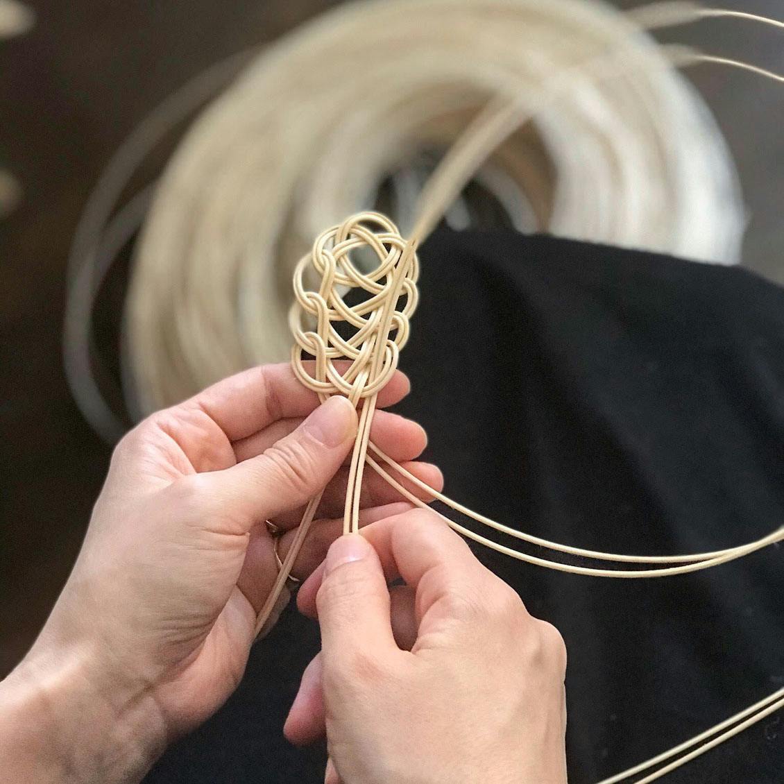 neuloはフィンランド語で「編む」という意味。デザイナーの山下さんが、根気のいる編み作業で一つひとつ仕上げています。