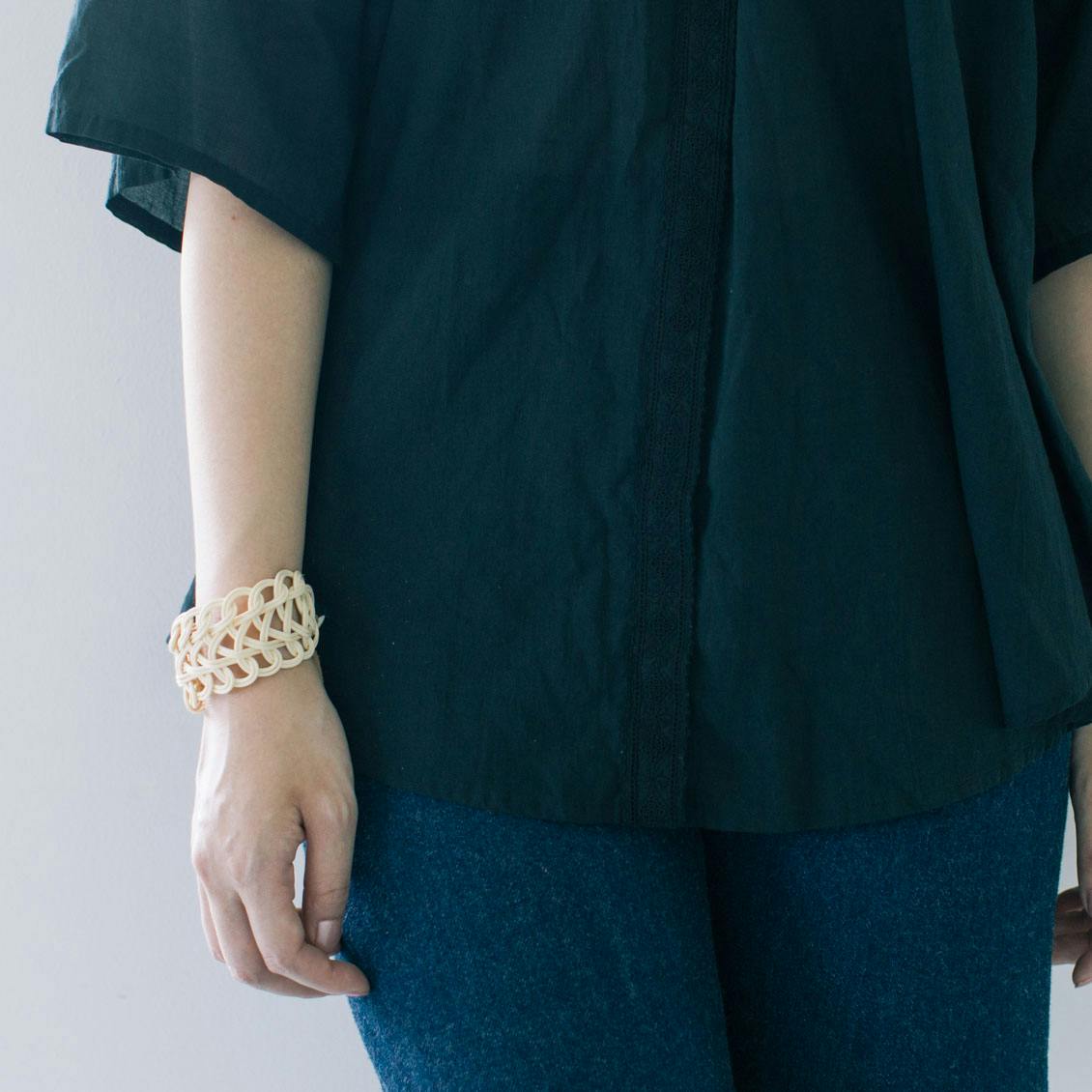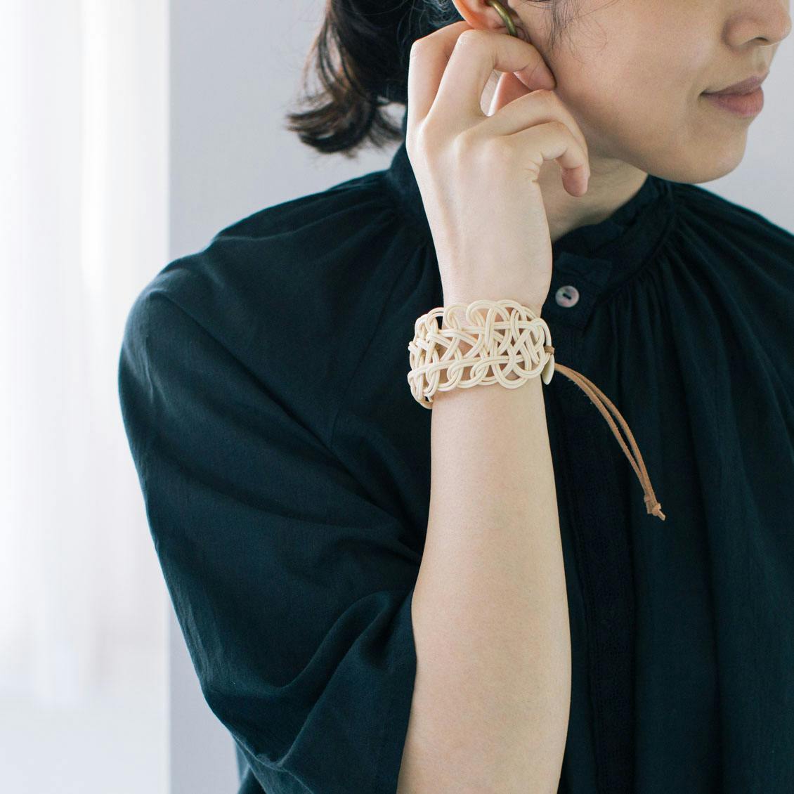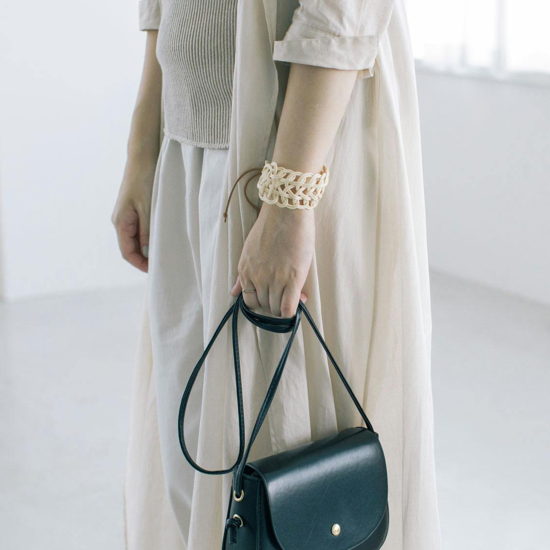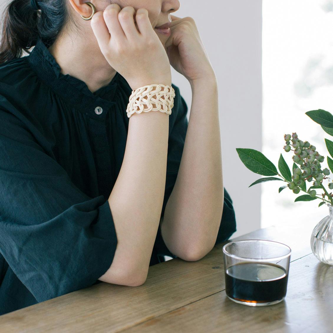 カゴのような編みもたまらなく愛らしい。手元のアクセサリーって、自分で眺められる良さもあると思います。