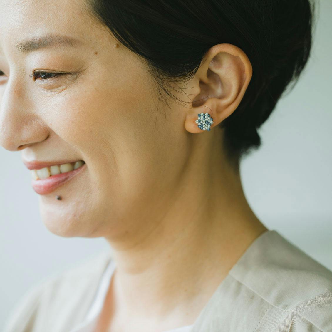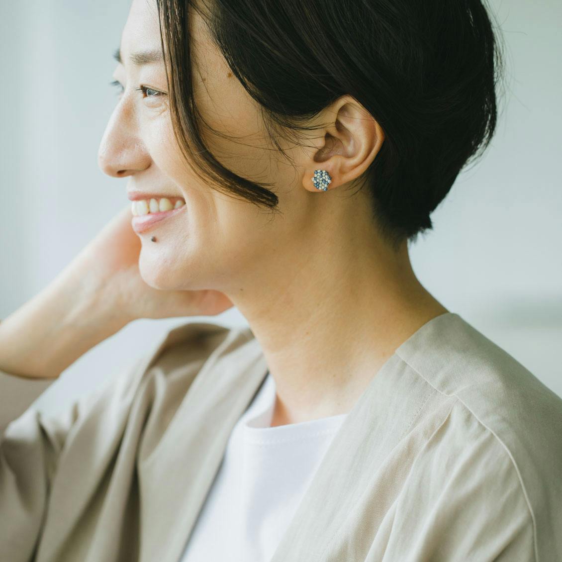 「シルバー×ブルー」は、より爽やかな雰囲気。2色を程よいバランスで散りばめて、耳元にキラッと見える色がアクセントになります。