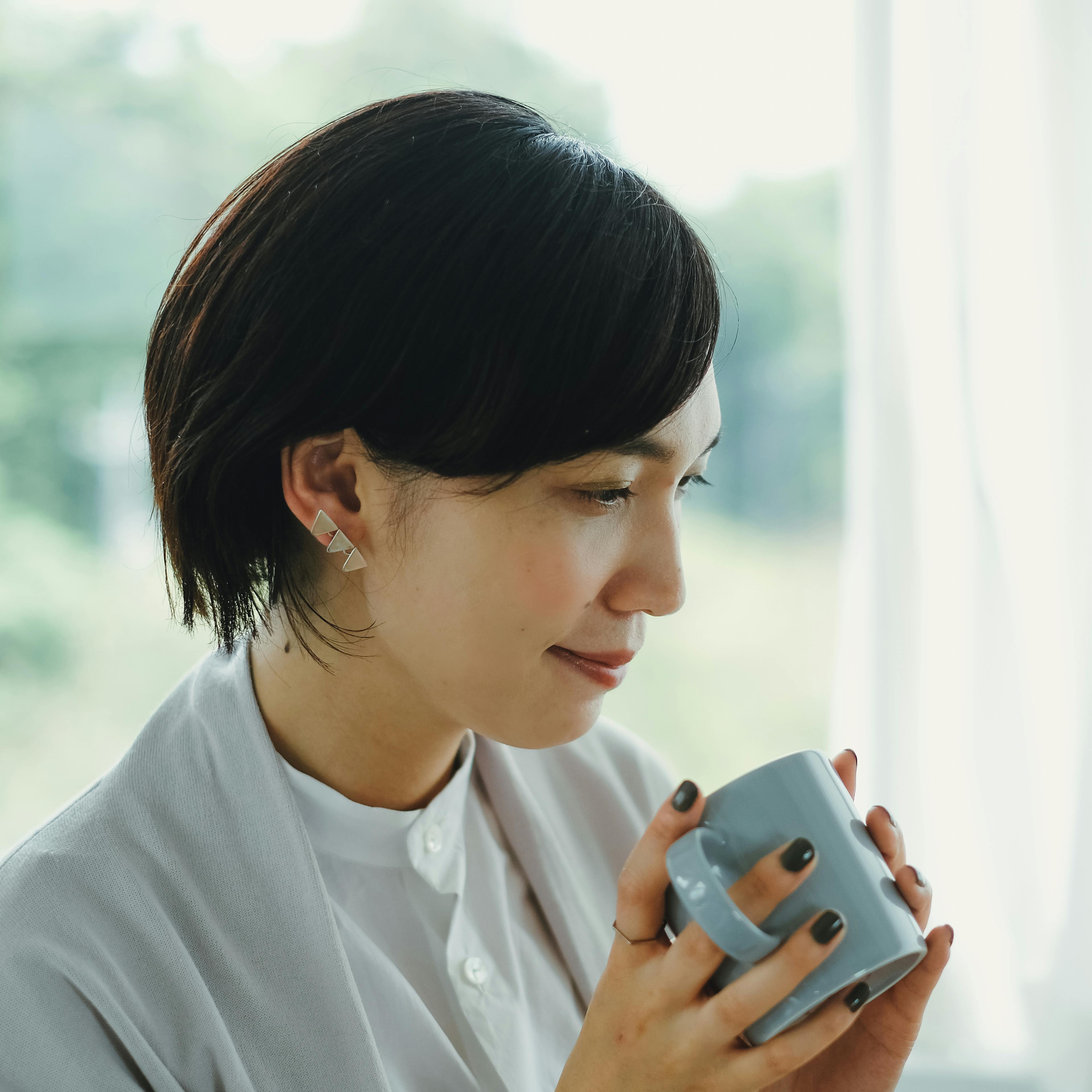 『三角モチーフ』のピアスは、コーディネートのアクセントにぴったり。マンネリした気分にも、スパイスを加えてくれそうです。