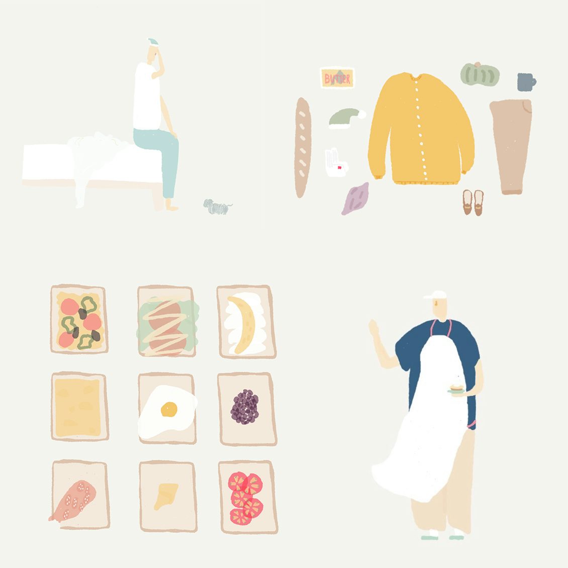 ちょっぴりシュールでかわいすぎない、大人っぽく淡い色使いがポイント。