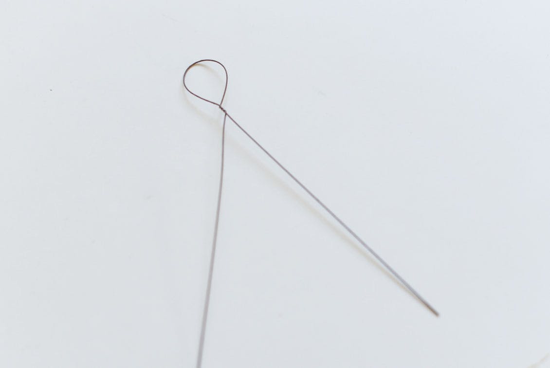 次に、ワイヤー1本をそのままU字に曲げて数回ねじり、直径2cmほどのループを作っておきます。(後ほど壁にかける際に使います)