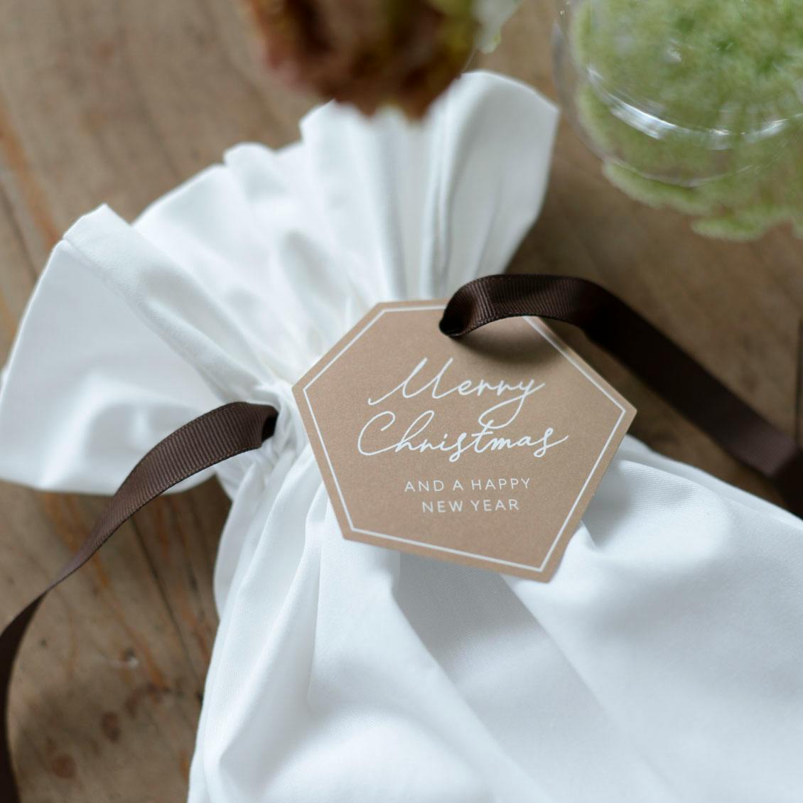 当店がご用意したこちらのクリスマスギフトは、当店の人気アイテム「スリムなミニ財布」をクリスマス限定の巾着に入れた特別な一品。