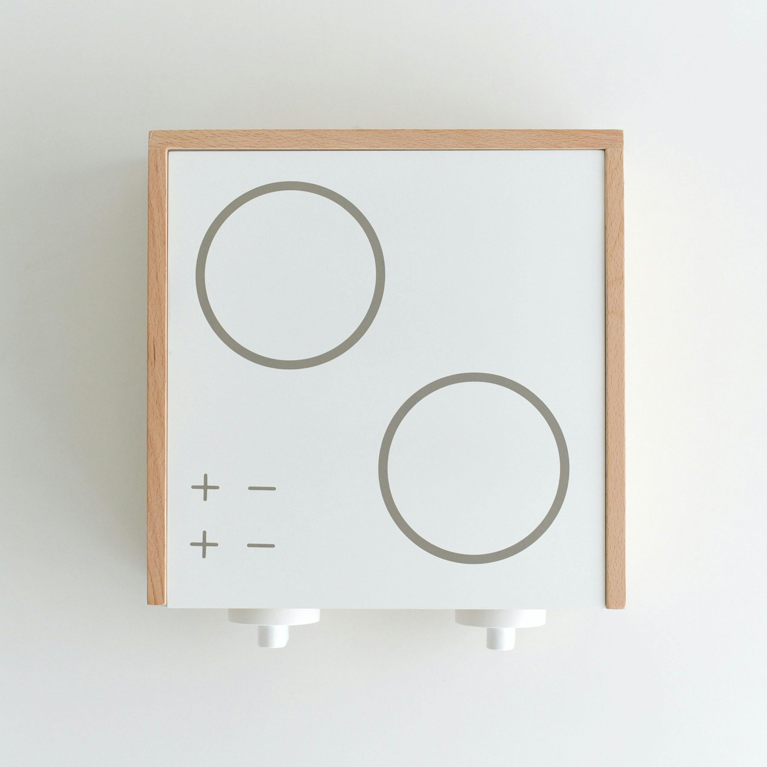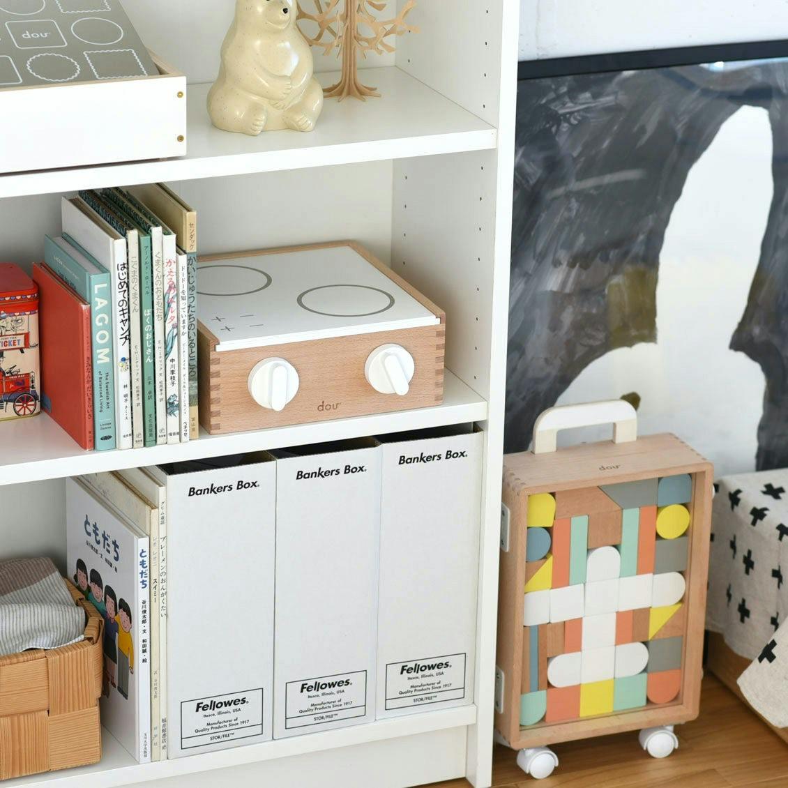 おもちゃを収納するコンロは、25cm × 25cm × 10cm。付属のおままごとセットを全部入れても余裕があります。よく遊ぶおもちゃも一緒に収納しておくこともできそう。
