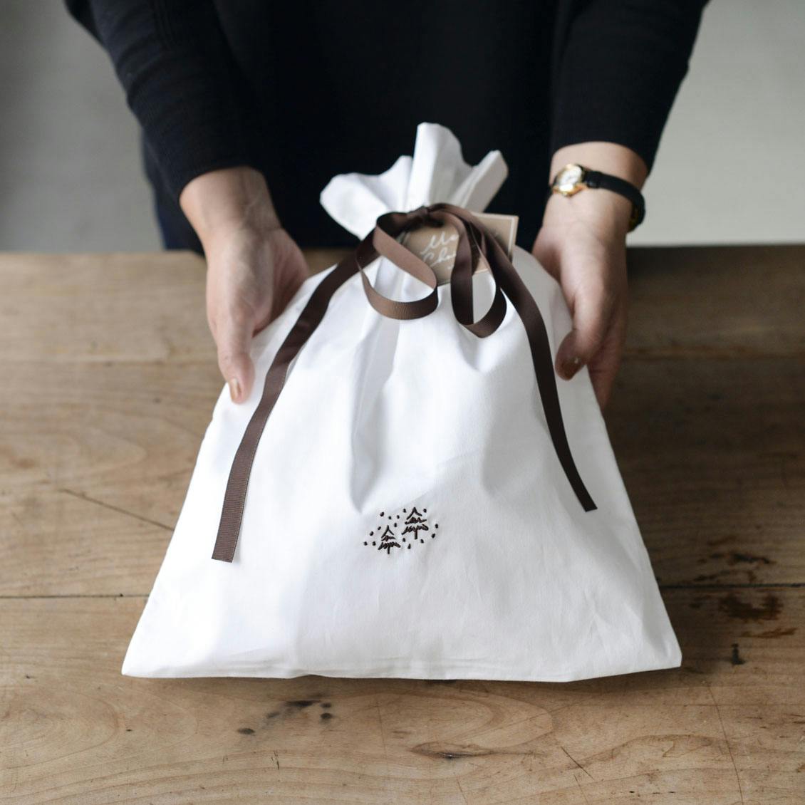 手で書いたような「もみの木と雪」の刺繍もワンポイントになっていますよ。