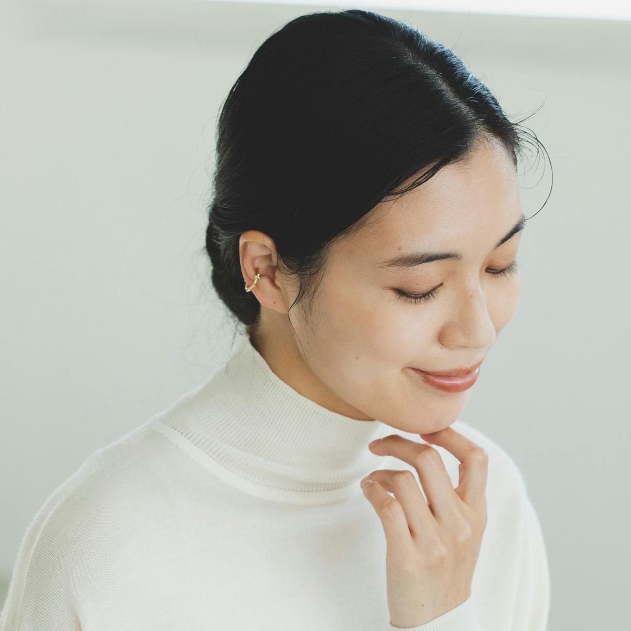 つけているのを忘れてしまうくらい軽く、イヤーカフは耳が痛くなって諦めていたというスタッフでも1日中つけていられるくらい。