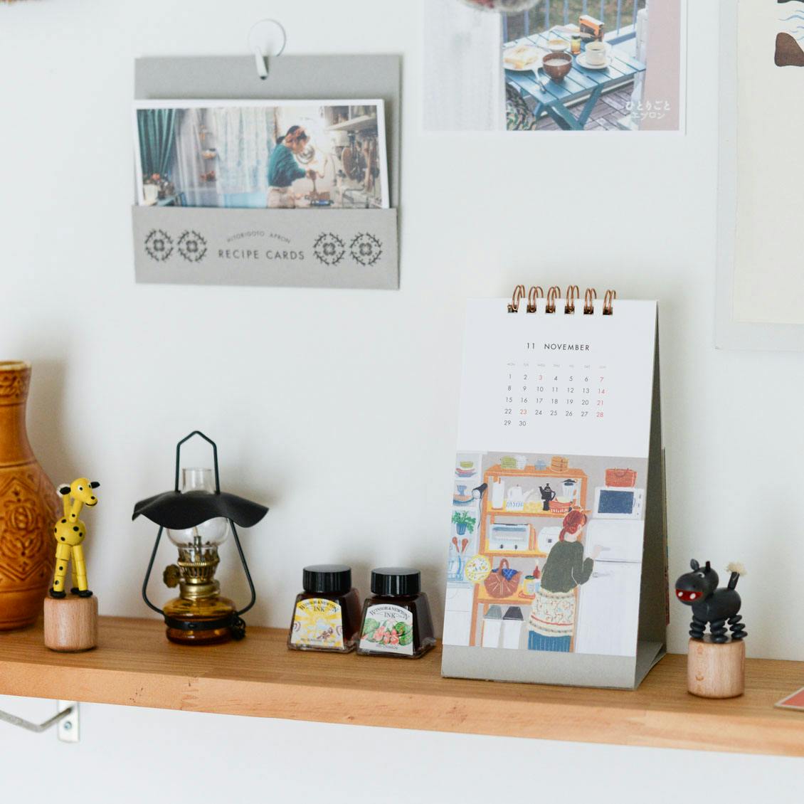 温かみのあるオイルパステルのタッチと、『ひとりごとエプロン』の世界観が重なり、目にするたびに心を照らすような愛らしいカレンダーに仕上がりました。