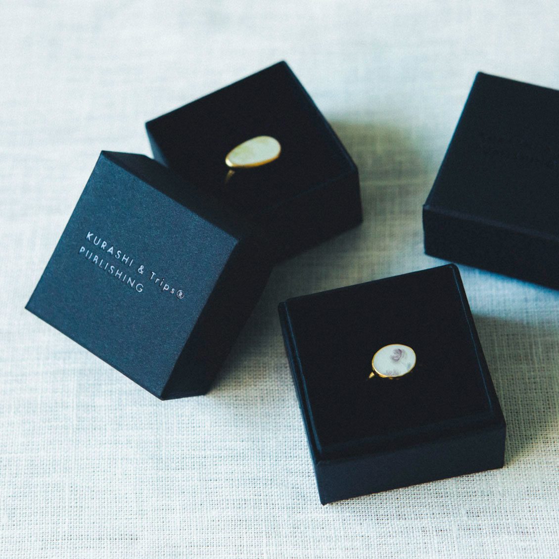 | 素材 | 【絵柄部分】 エポキシ樹脂 【リング土台部分】 真鍮、マットゴールドコーティング |