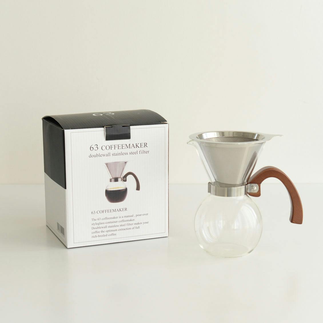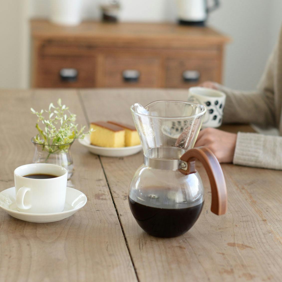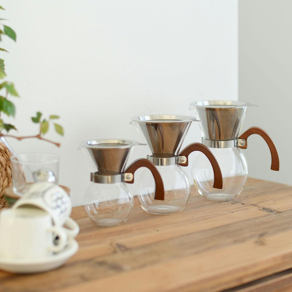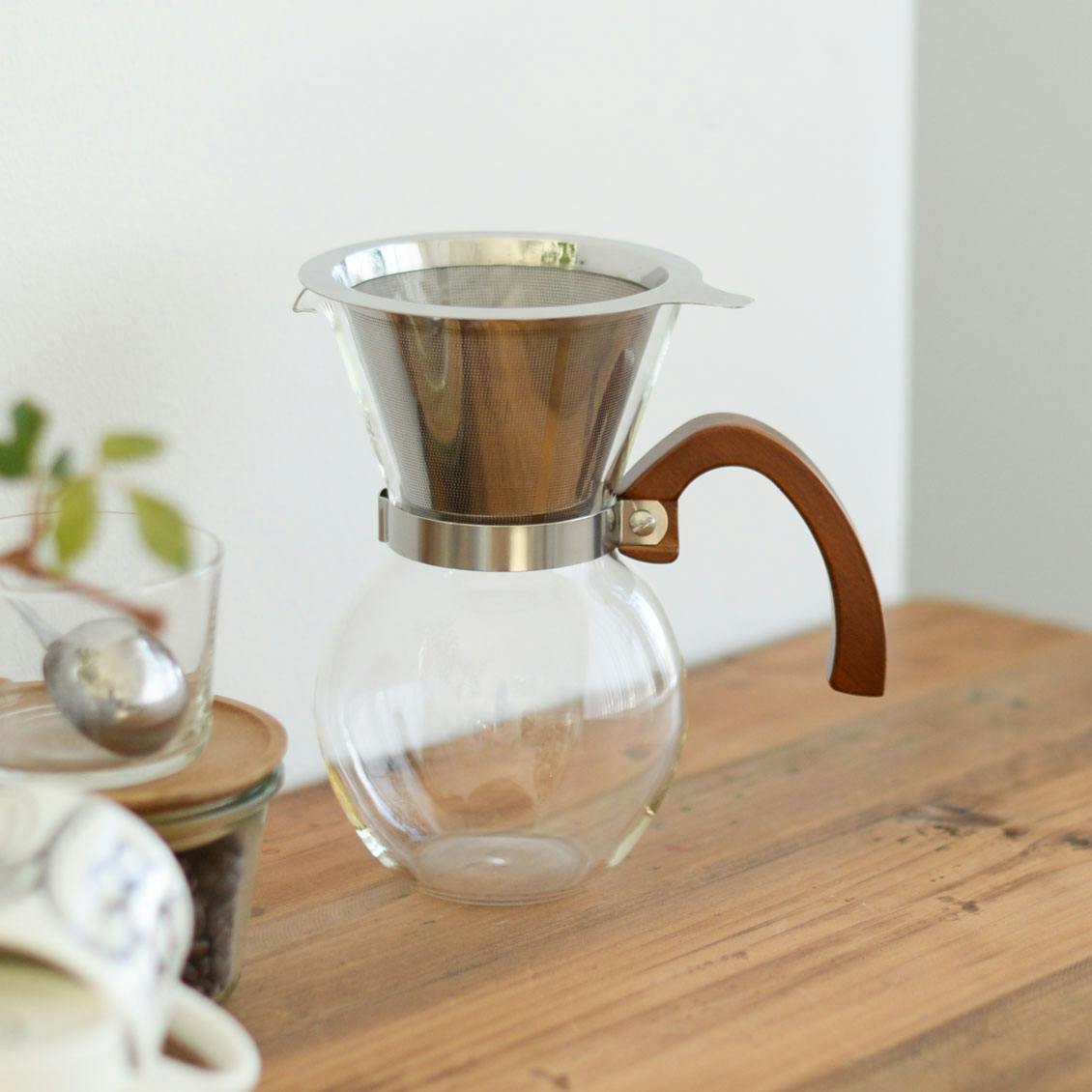 | 材質 | 本体:ホウケイ酸ガラス ハンドル:竹、ステンレススチール フィルター:ステンレススチール |