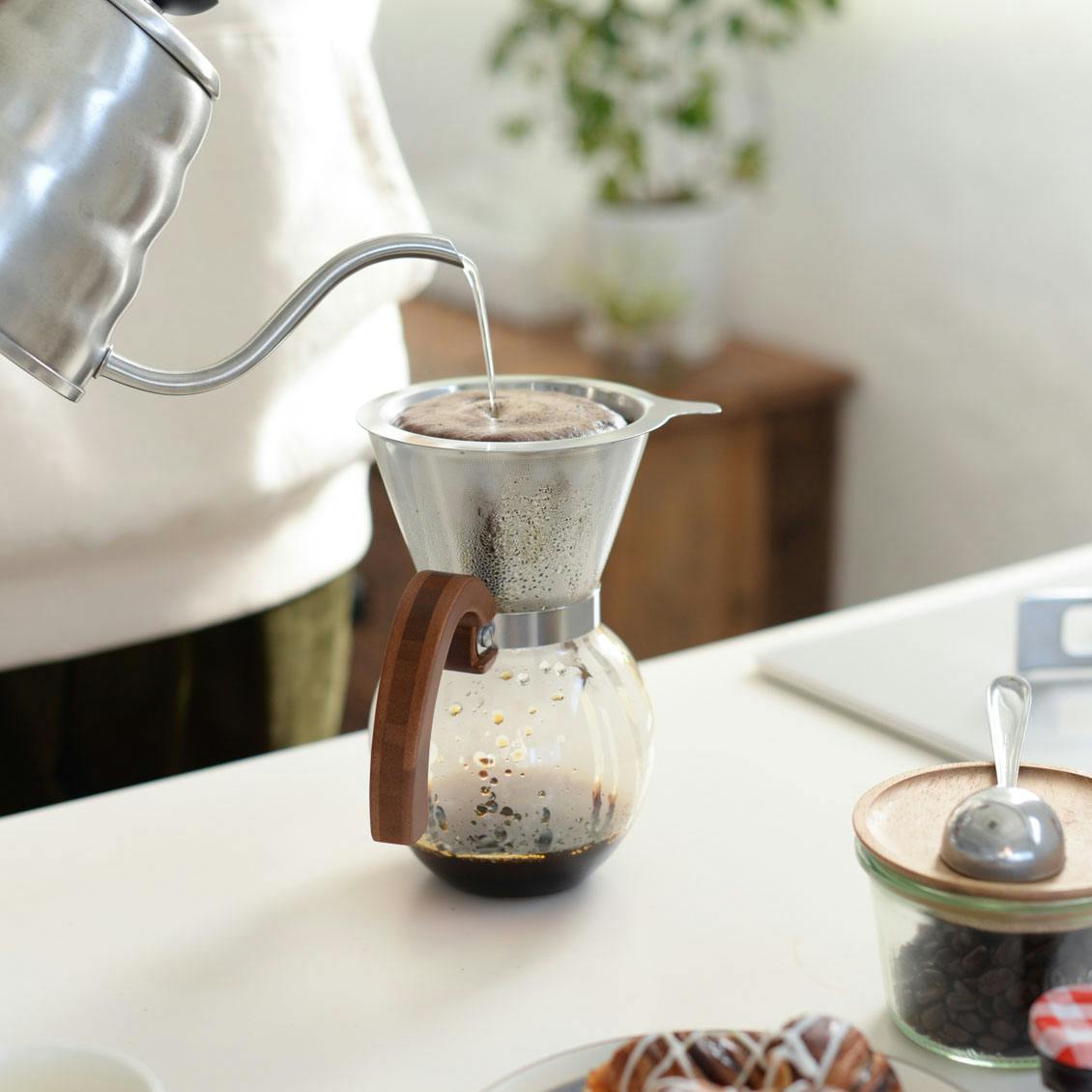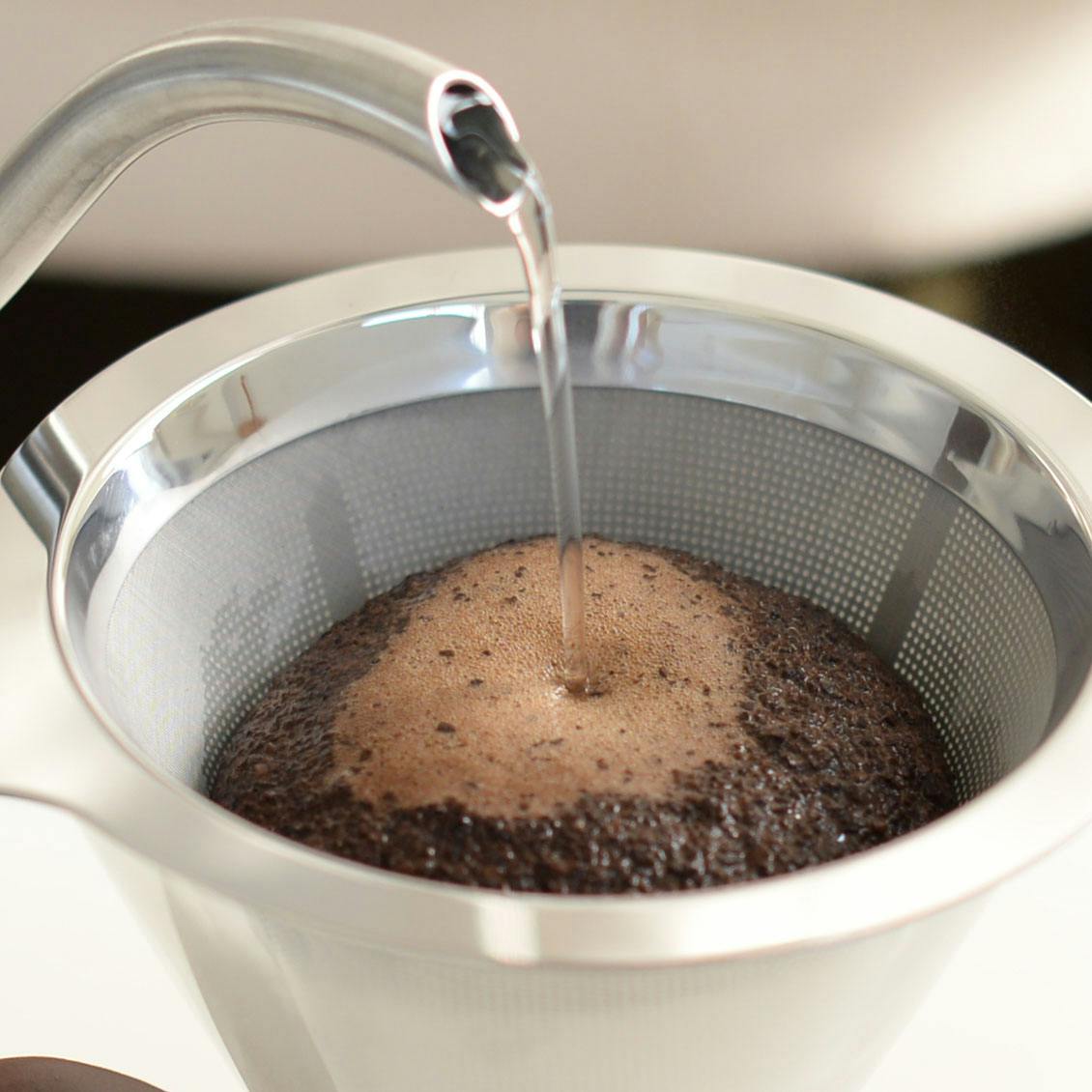 豆の旨みをダイレクトに味わえる「ステンレスメッシュのフィルター」付きなので、ぜひ新鮮な豆でお楽しみください。