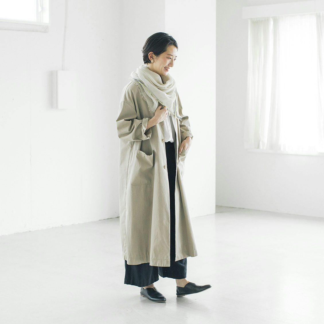 程よい薄さだから、スカーフのように頭に巻いてみたり、首元の巻き方を変えてみたり、さまざまにアレンジができます。