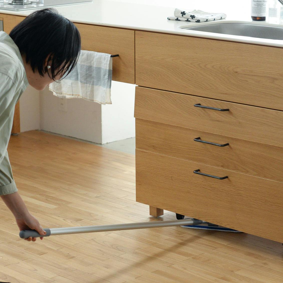 気になりはじめると無視できないホコリや床のザラつき。このモップセットは、そんな瞬間を逃さずお掃除に取り掛かれる道具です。