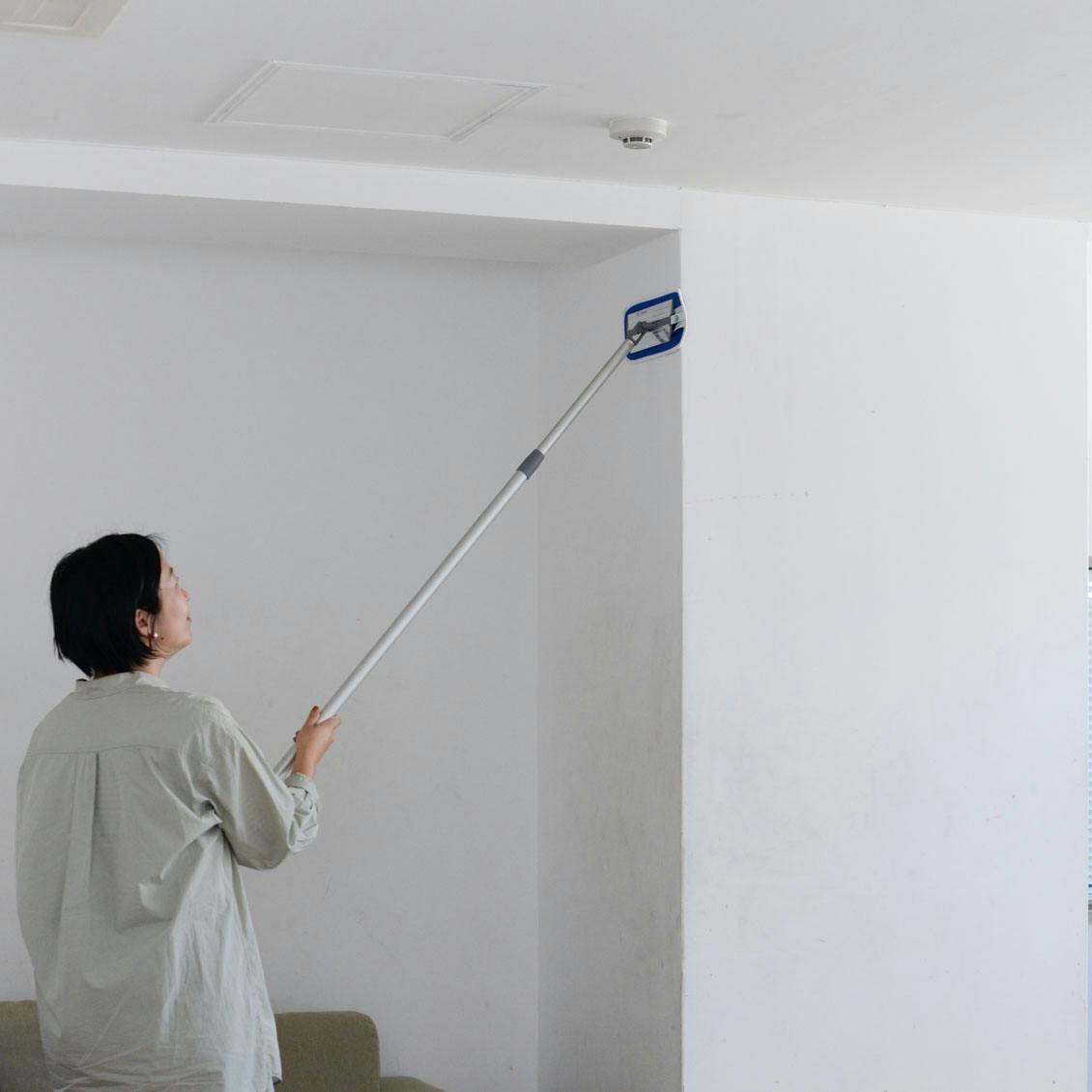 ぐんと伸ばせば、壁や天井などの高い場所にも有効。これ1本で家中360度お掃除できます。