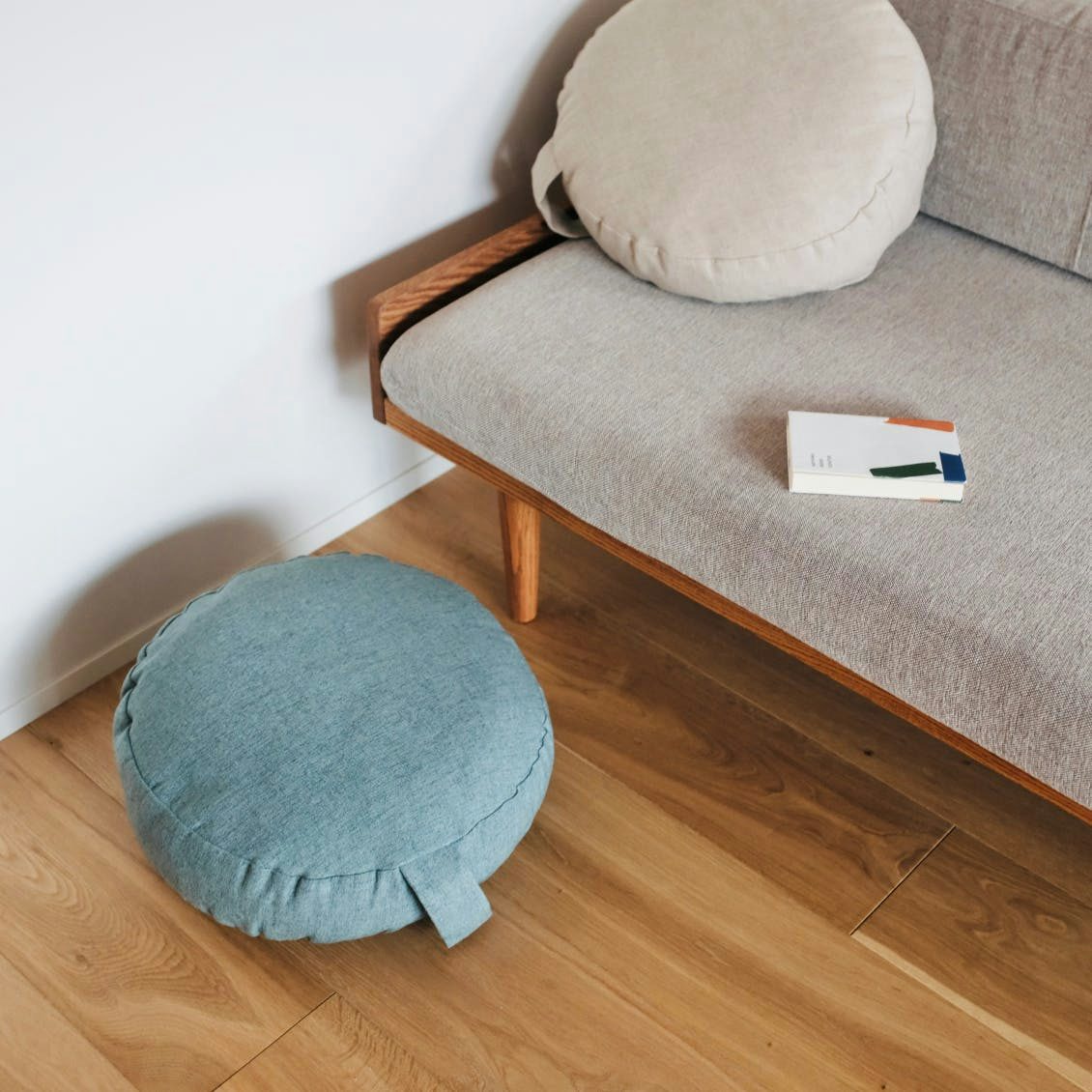 【スタッフの愛用品】ソファでくつろぐ時間のおともになった、ころんと可愛い北欧カラーの「フロアクッション」