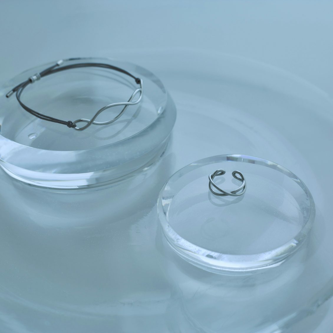 「水面の揺らぎ」をモチーフに、お揃いでイヤーカフも作りました。