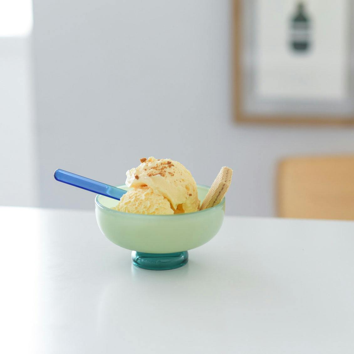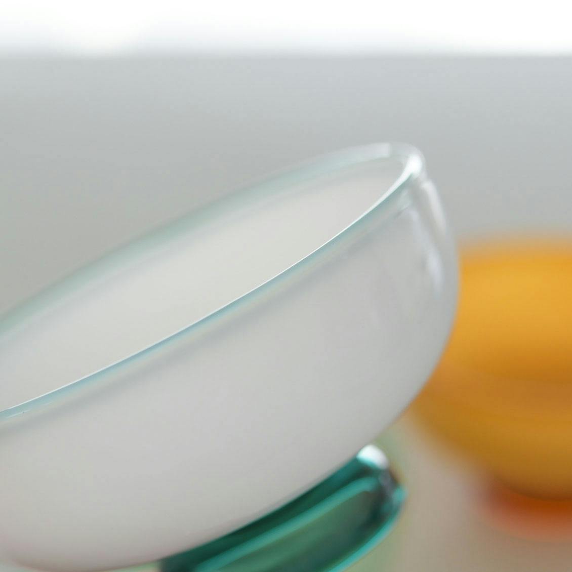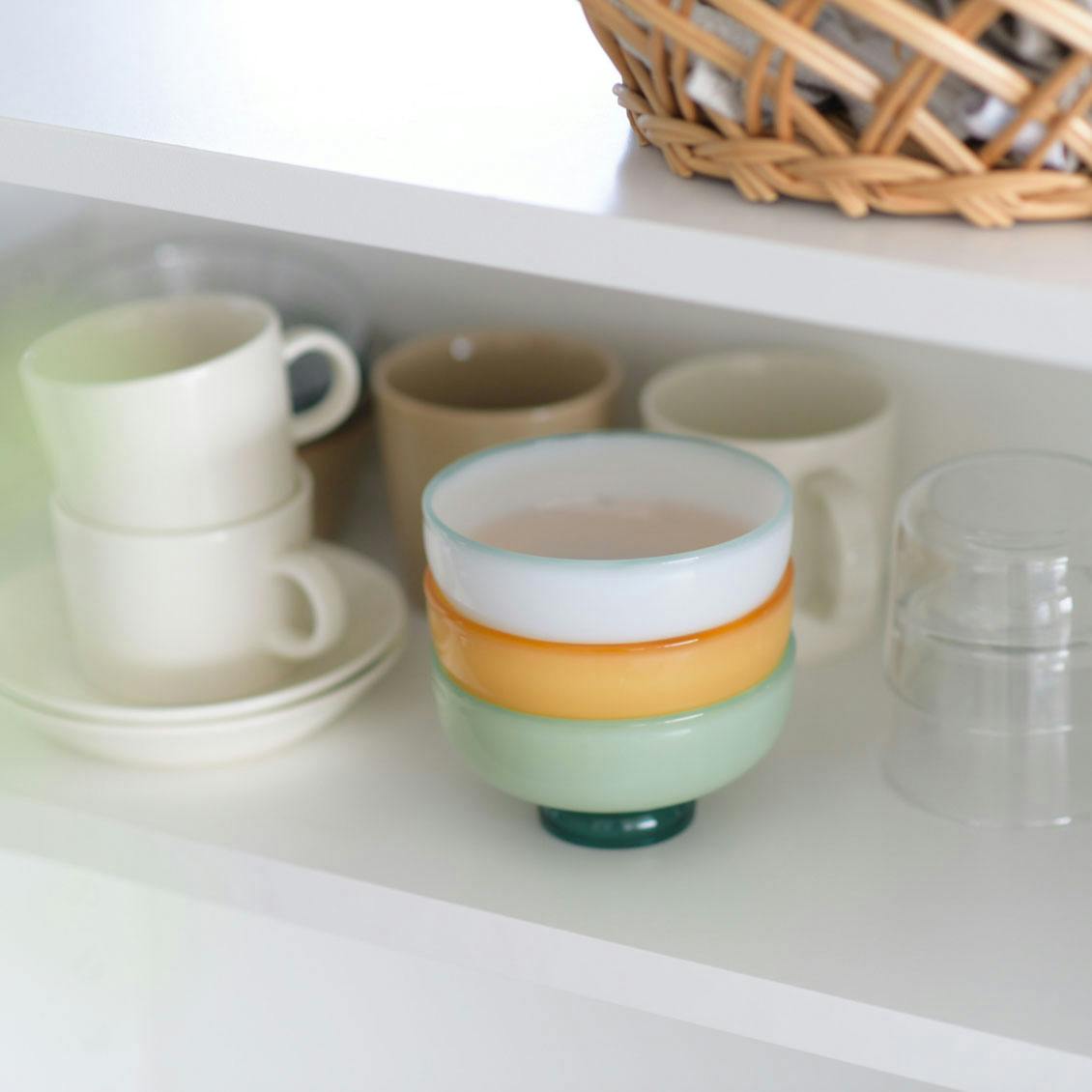 今回ご紹介する器は、乳白色のガラスで作られたデザートボウル。かわいい高台つきで、レトロな雰囲気がとびきり可愛くみせてくれます。