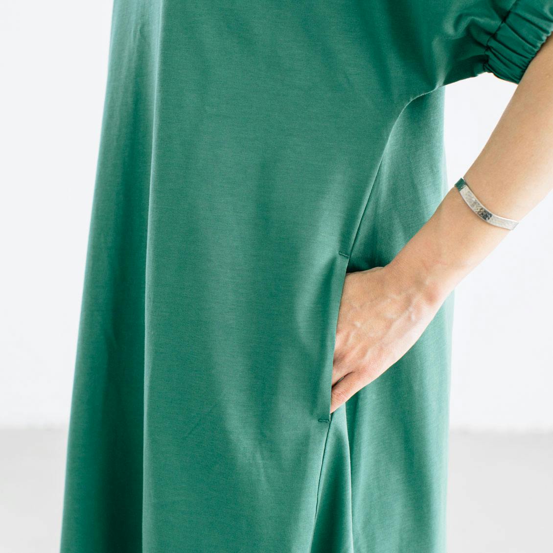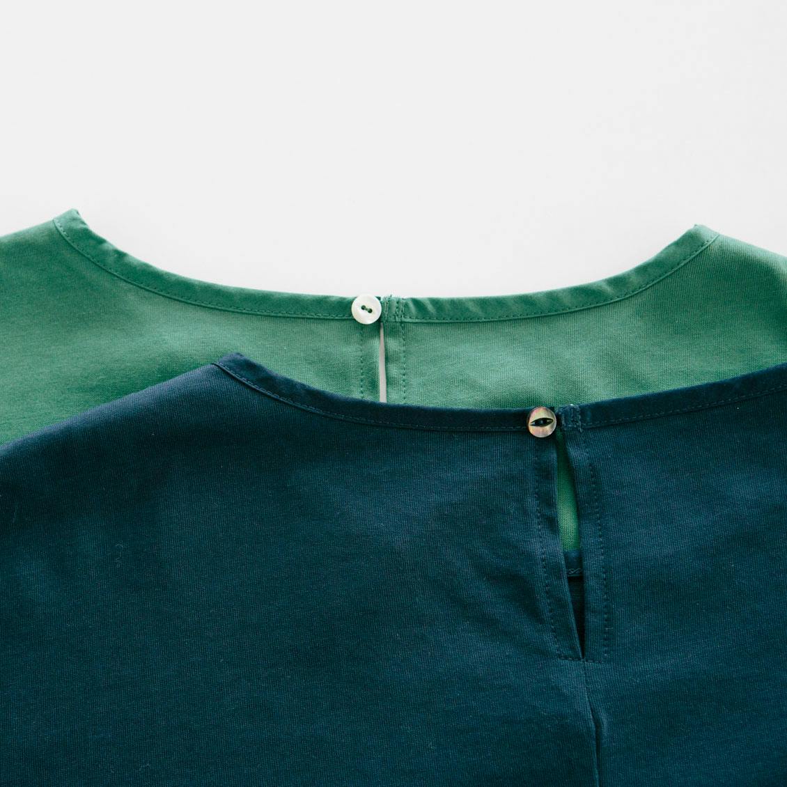 カラーは、グリーンとネイビー。シンプルに一枚でさらっと決まり、それでいてカジュアルになり過ぎない、きちんと感のあるアイテムです。