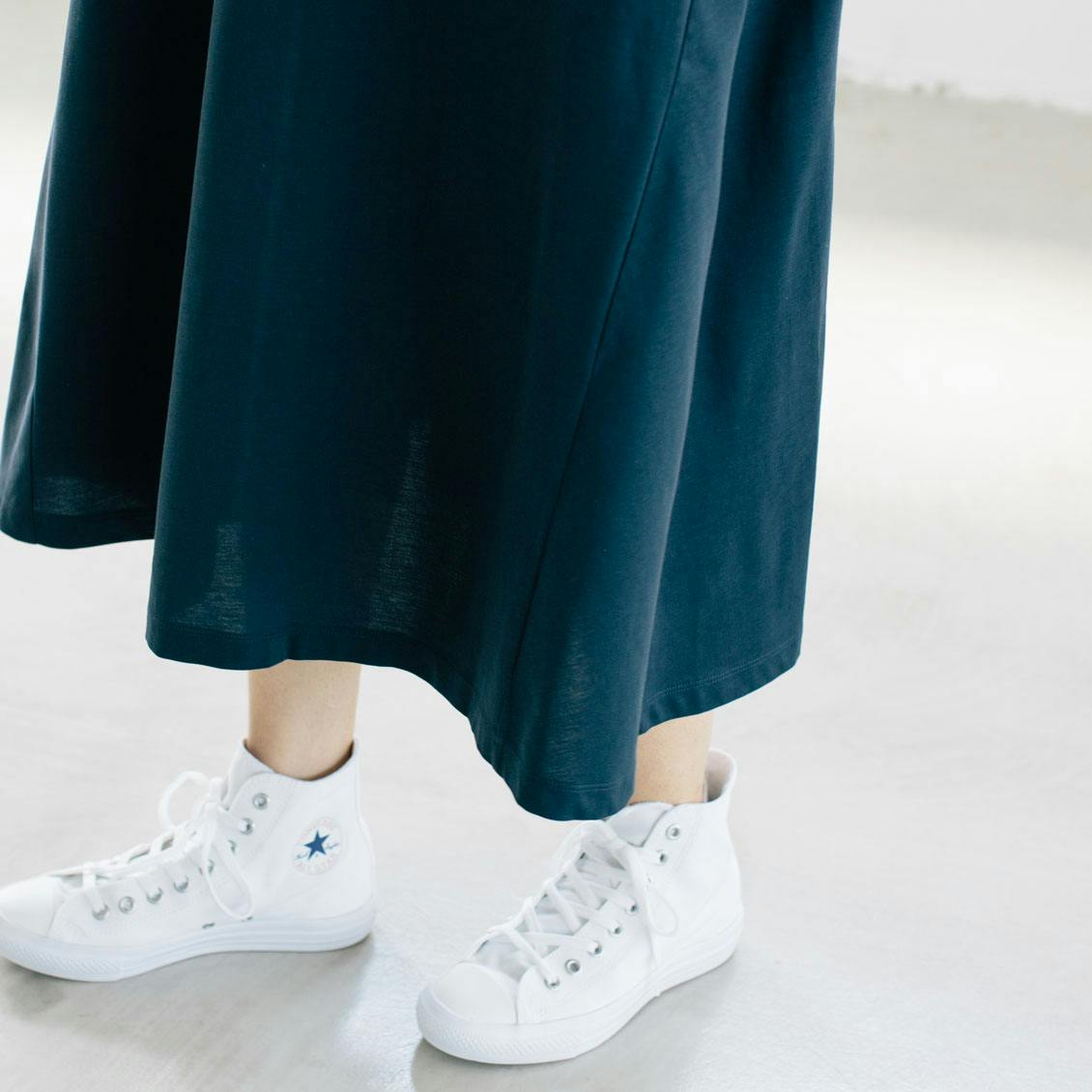 素材は、やわらかくて動きやすいコットン100%のカットソー。その中でも、カジュアルすぎない、程よいツヤ感のある生地を採用しました。
