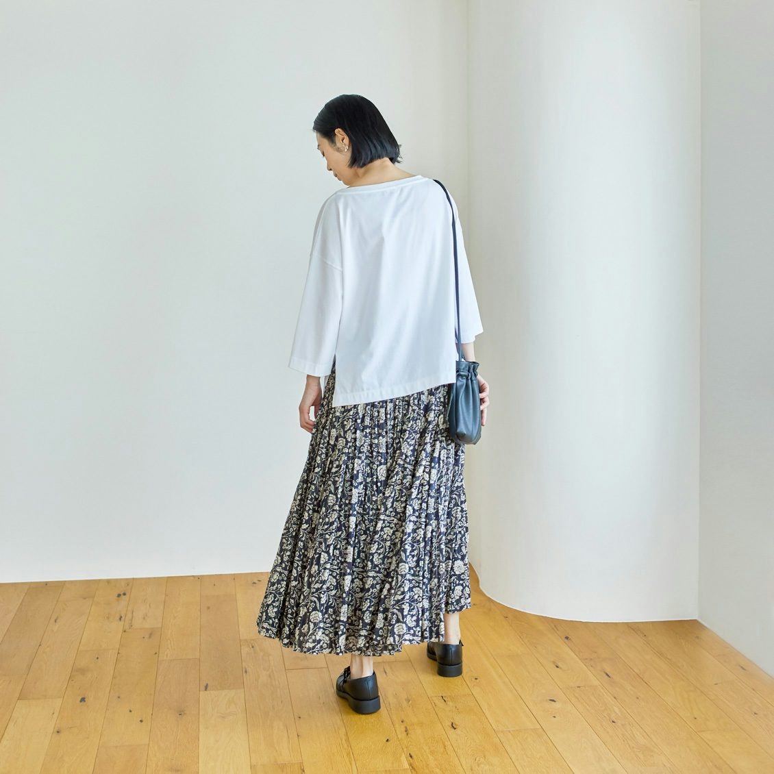 忙しい日も、ゆっくり過ごす日も、いつもご機嫌に暮らしたい。そんな意味合いでも、きっとこれは「大人に似合う」花柄スカートだと思います。