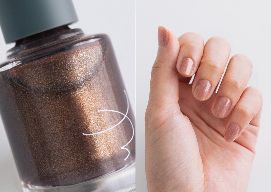 もっともラメ感があり、塗りやすさもNo.1。自爪が少し透ける薄いブラウンで、肌馴染みよく、年齢を重ねた手にもよく似合います。