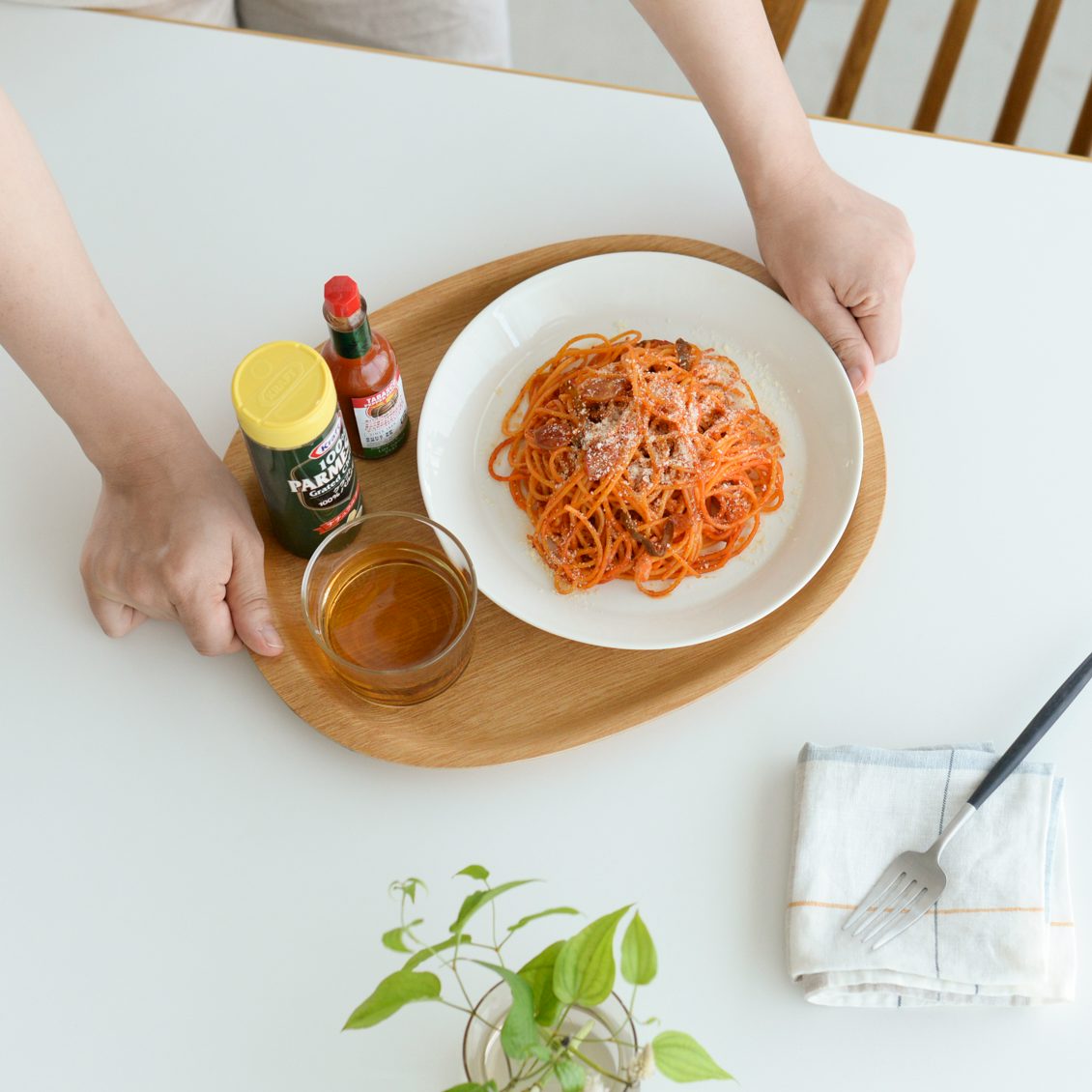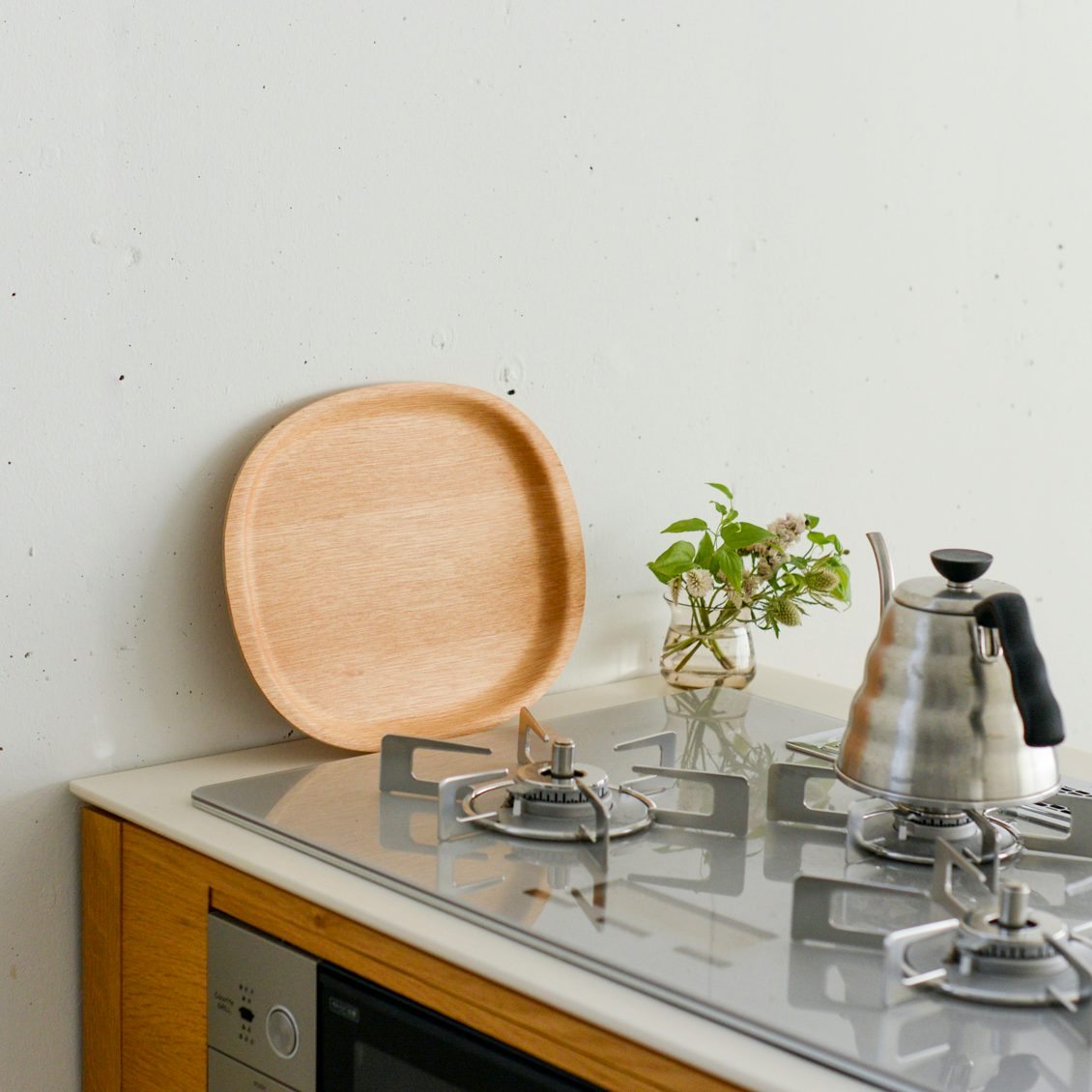 すぐ手に取れるようキッチンに立てかけたり、よく使うものをまとめて乗せたり、トレイは見える場所に出しておくことも多いアイテム。