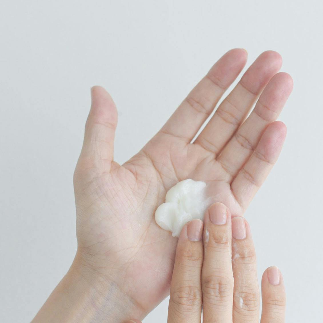 シャンプーの細やかな泡が髪の毛全体を包み、うるおいを与えながら洗ったあと、さらにこっくりとしたバーム状のトリートメントでしっかり保湿できます。
