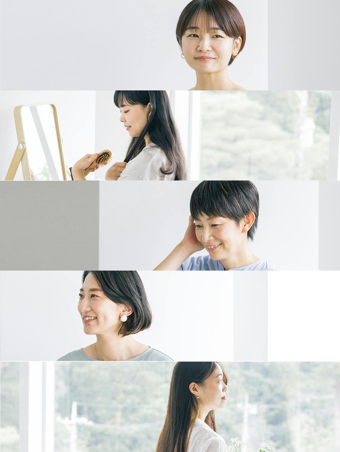 ショート、ボブ、ロング......そしてカラーリングなどをして髪質の異なるスタッフ5名に数日使ってもらい、感想を聞いてみました。 モイストとスムースどちらのタイプを選ぶか、参考になったらうれしいです。