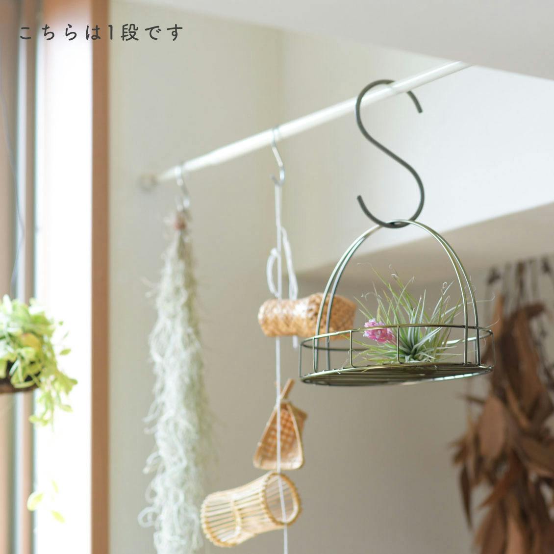 1段なら、高さは約15cmほどなので背のあるボトルなどをいれたり、吊るして飾ったりもできます。(耐荷重2kg、2段は4kg)