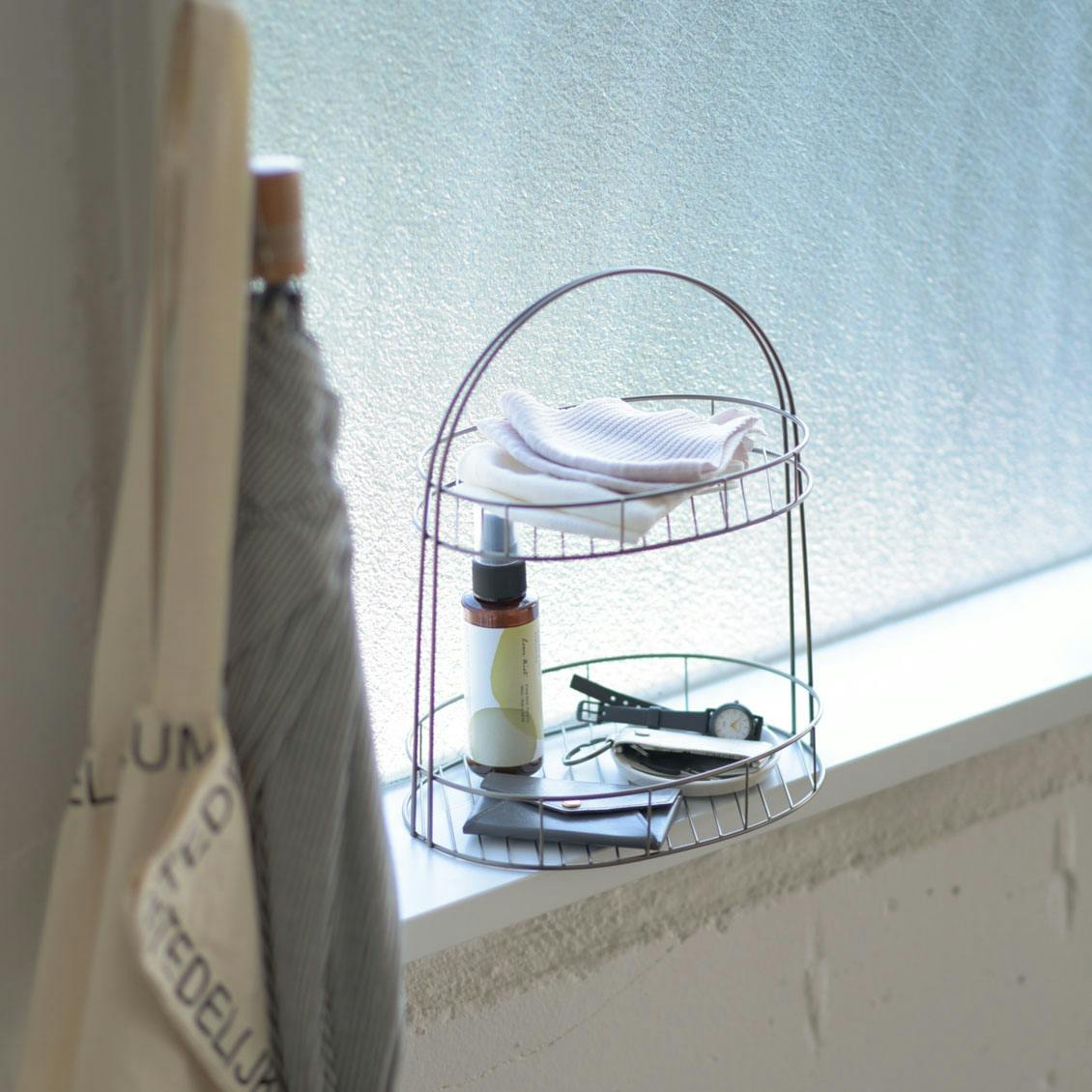 「見せる収納が叶う」持ち手付きワイヤーバスケット(2段)