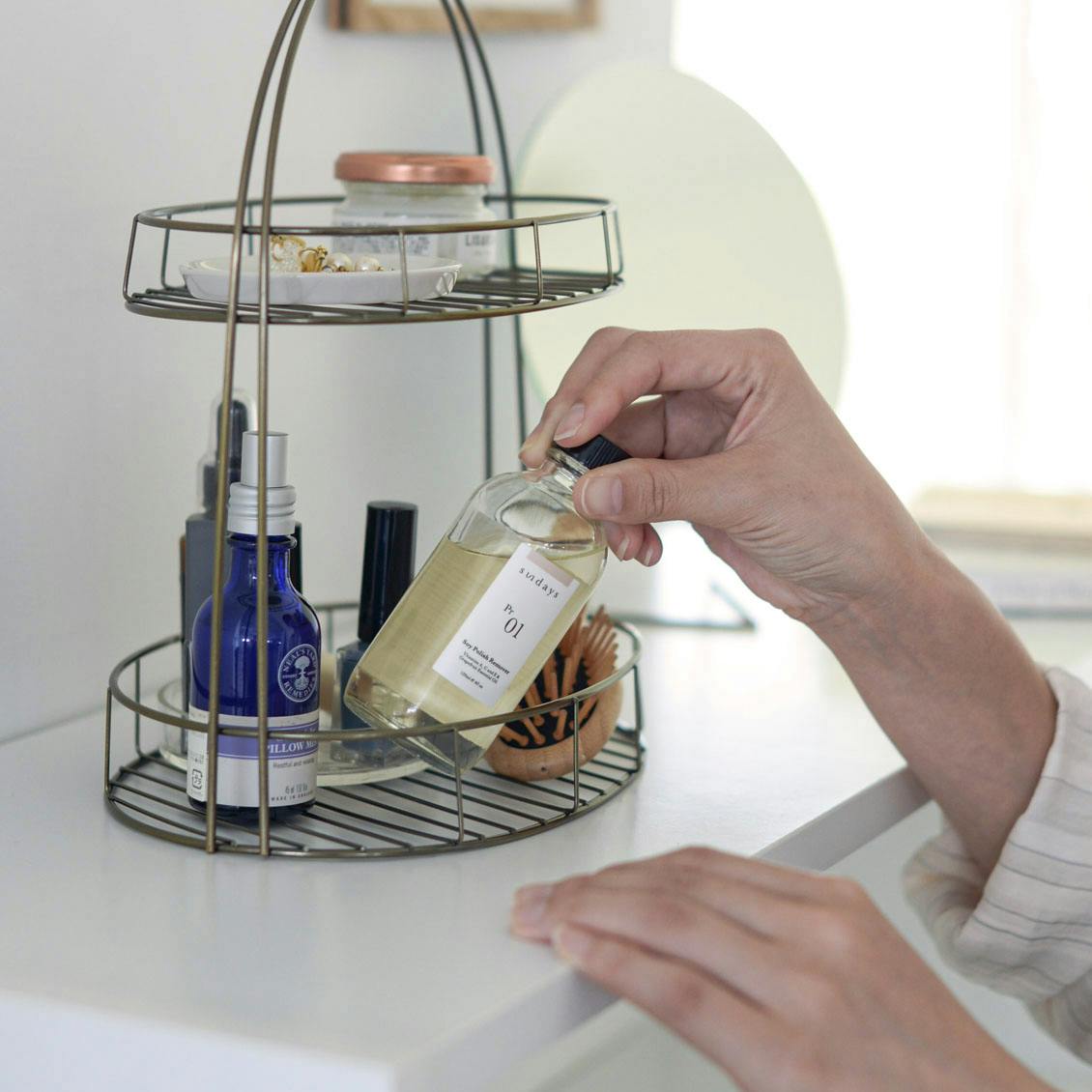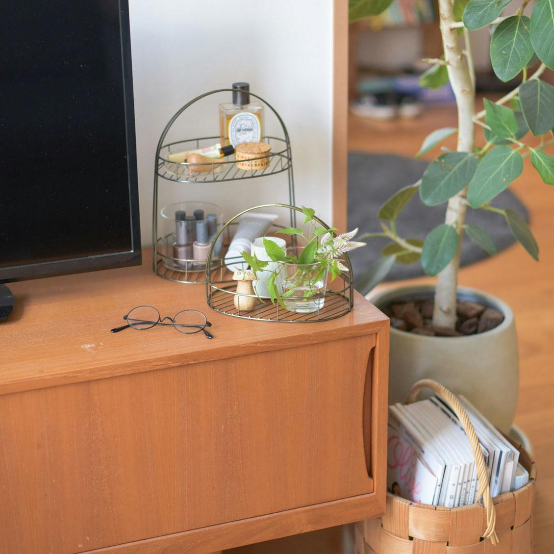 2段なら、細々とした調味料がたくさん収納できたり、コスメグッズなどの身支度グッズの置き場にしたり。収納量が倍だから物が増えるところに置きたいですね。