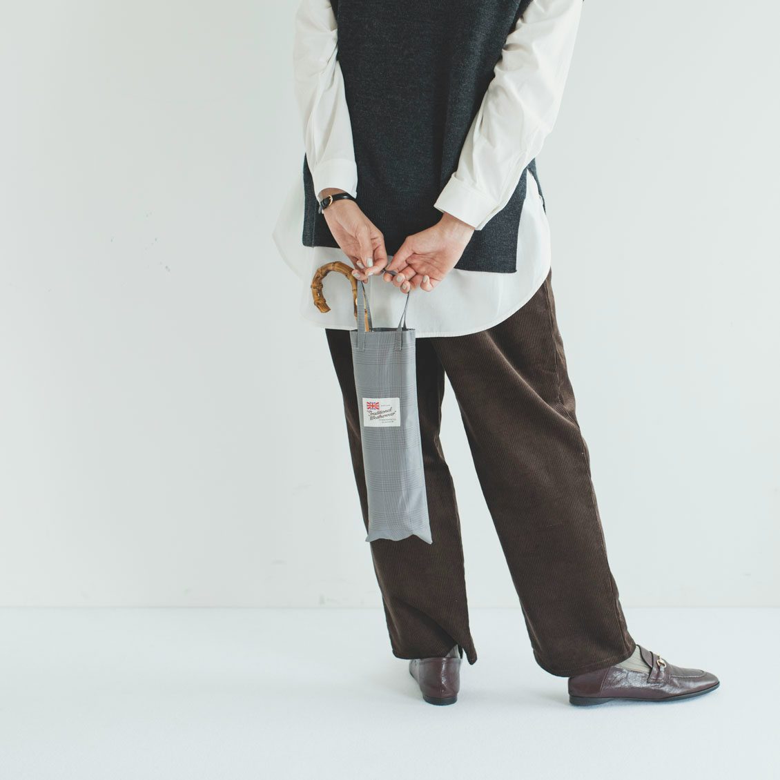 ぬれた傘をさっと入れて持ち運びやすいケースつき。持ち手は長めで、手に提げやすくなっています。