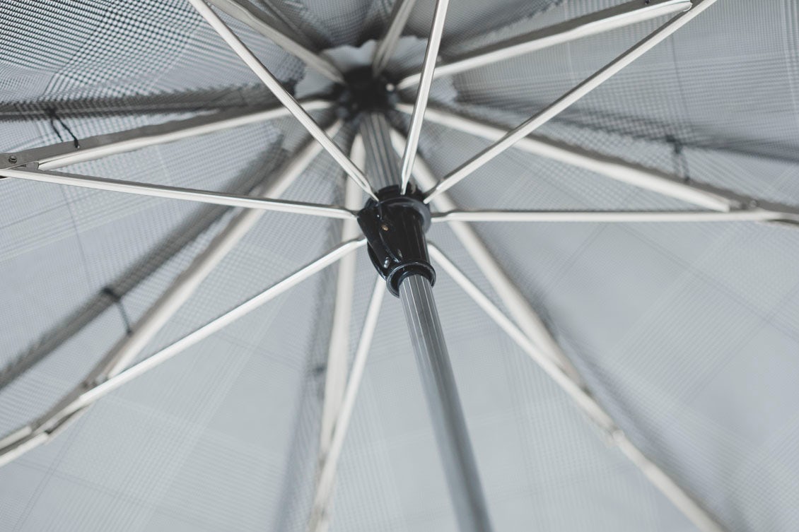 こちらの傘の骨は、とことん頼れる丈夫なスチール製。しっかりとした作りですが、太すぎないので、無骨な印象はありません。