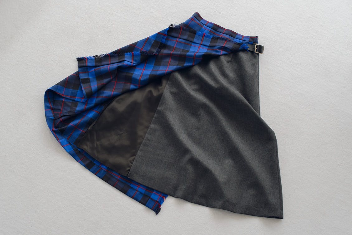 クラシカルなキルトスカートのシルエットといえば、ストンと落ちるプリーツタイプ。