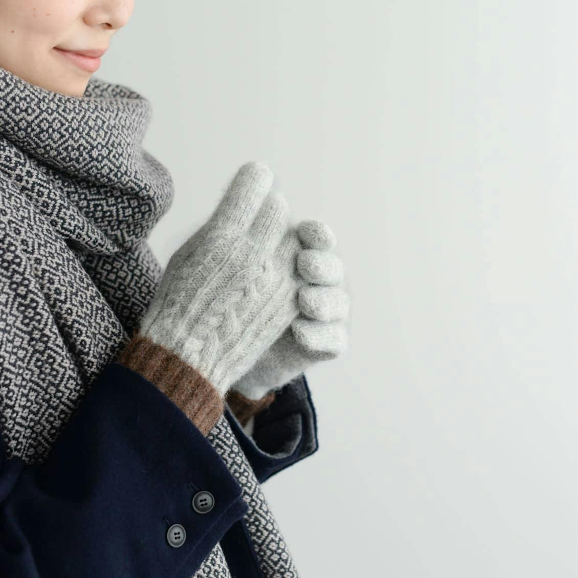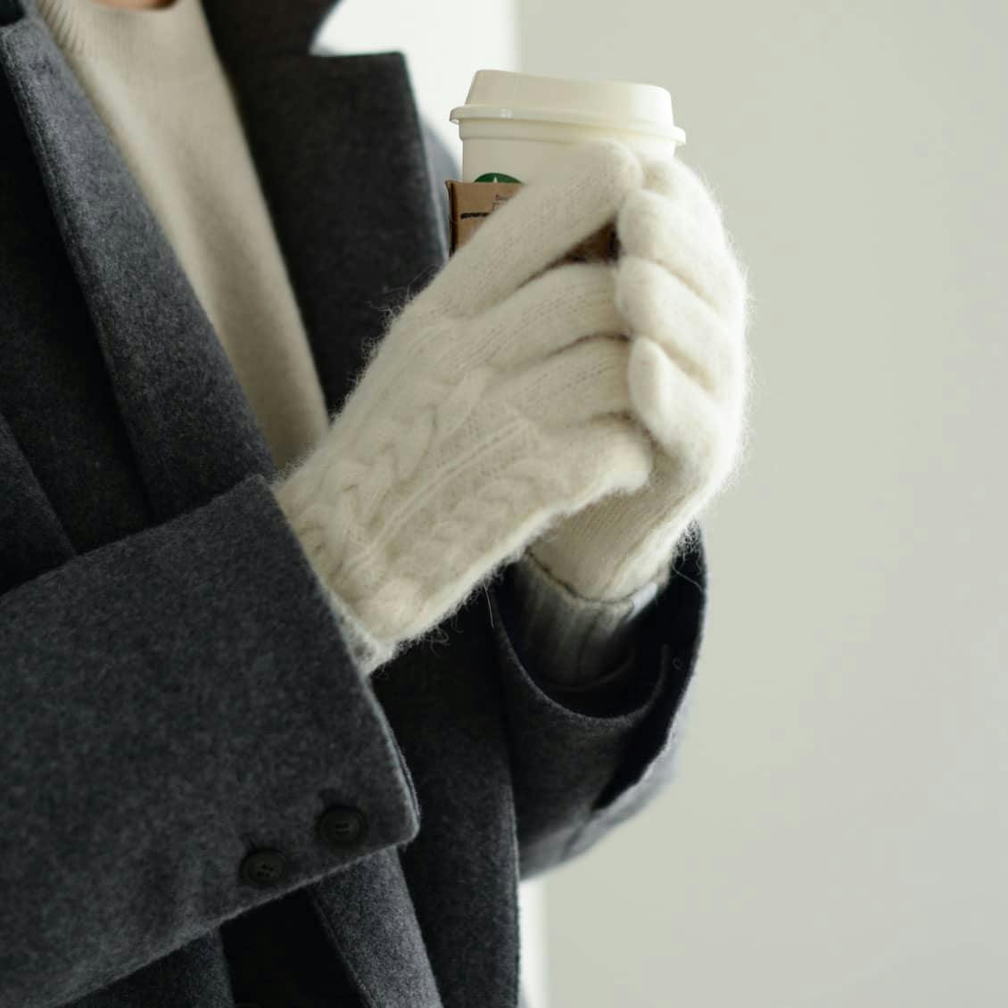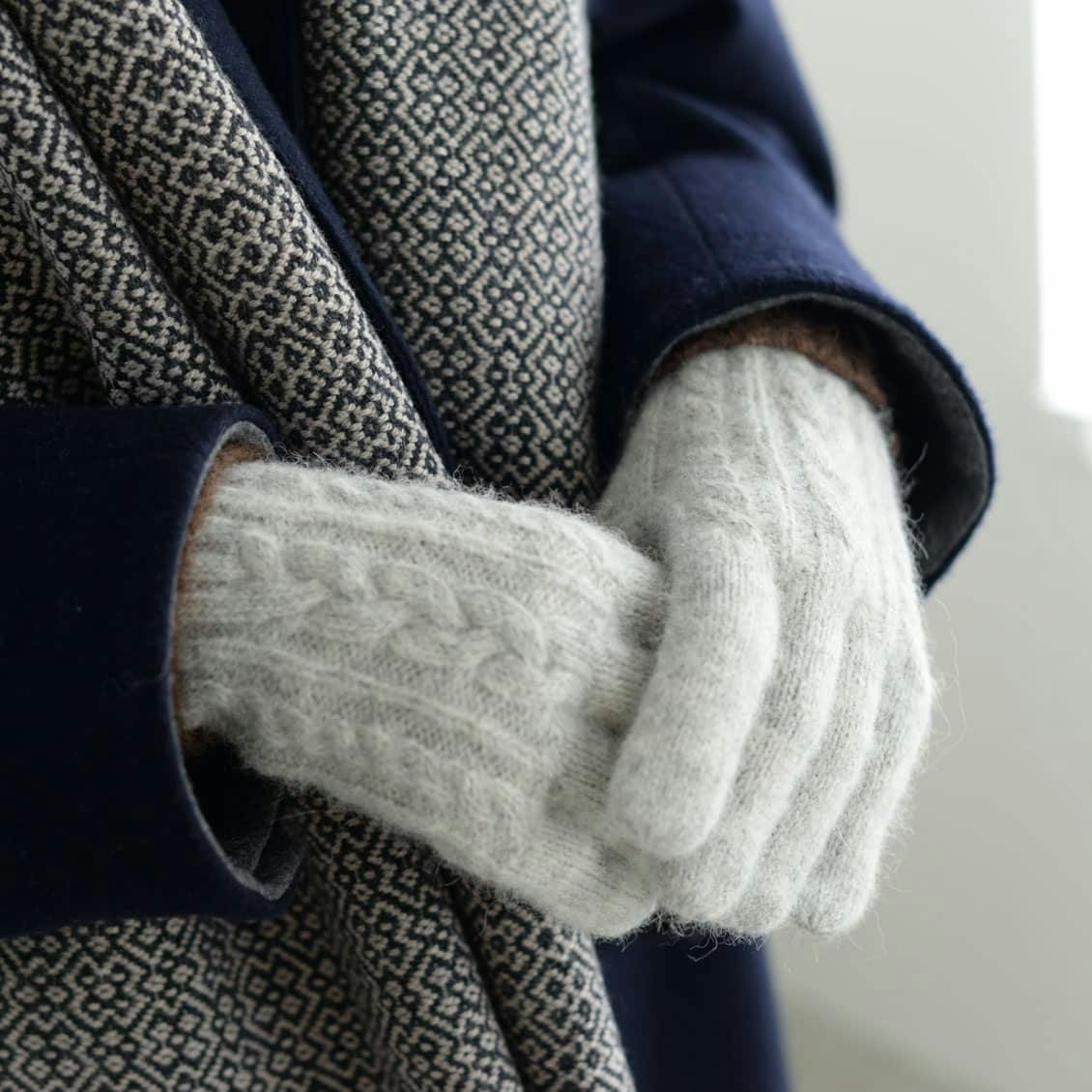 ふわふわなのケーブル編み手袋は、手元を見るたびに思わずきゅん。