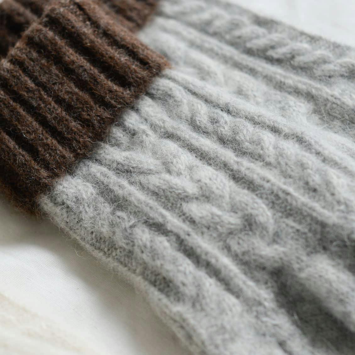 甲の部分にあしらったのは、アランニットの伝統的な模様「ケーブル編み」。