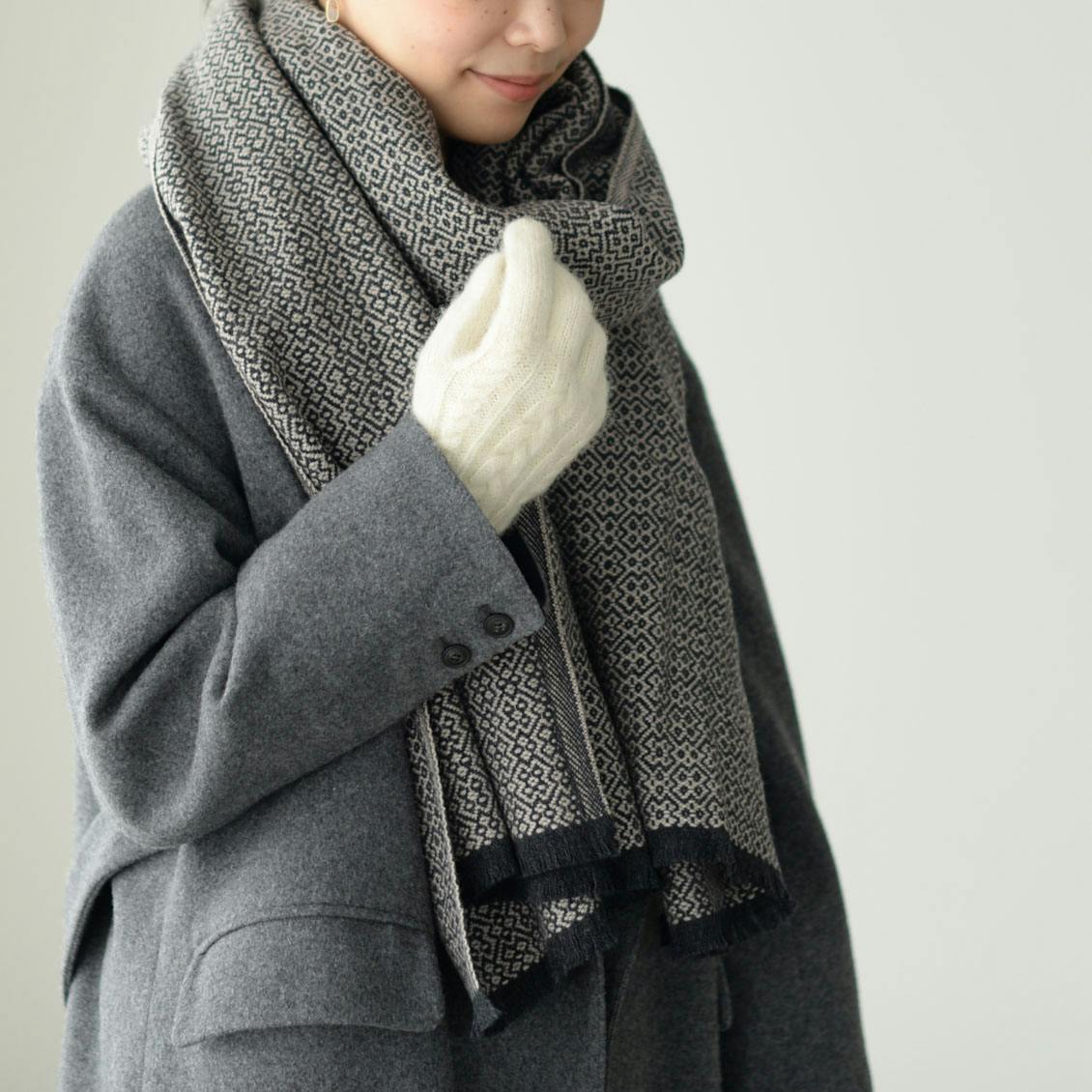 手袋をコーデのポイントにするも良し。ストールと手袋の色を揃えるのもおすすめです。