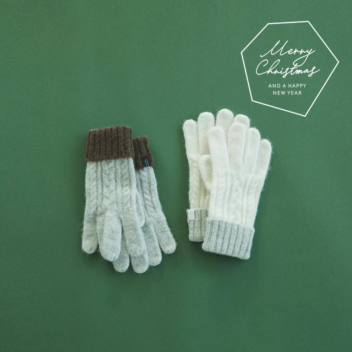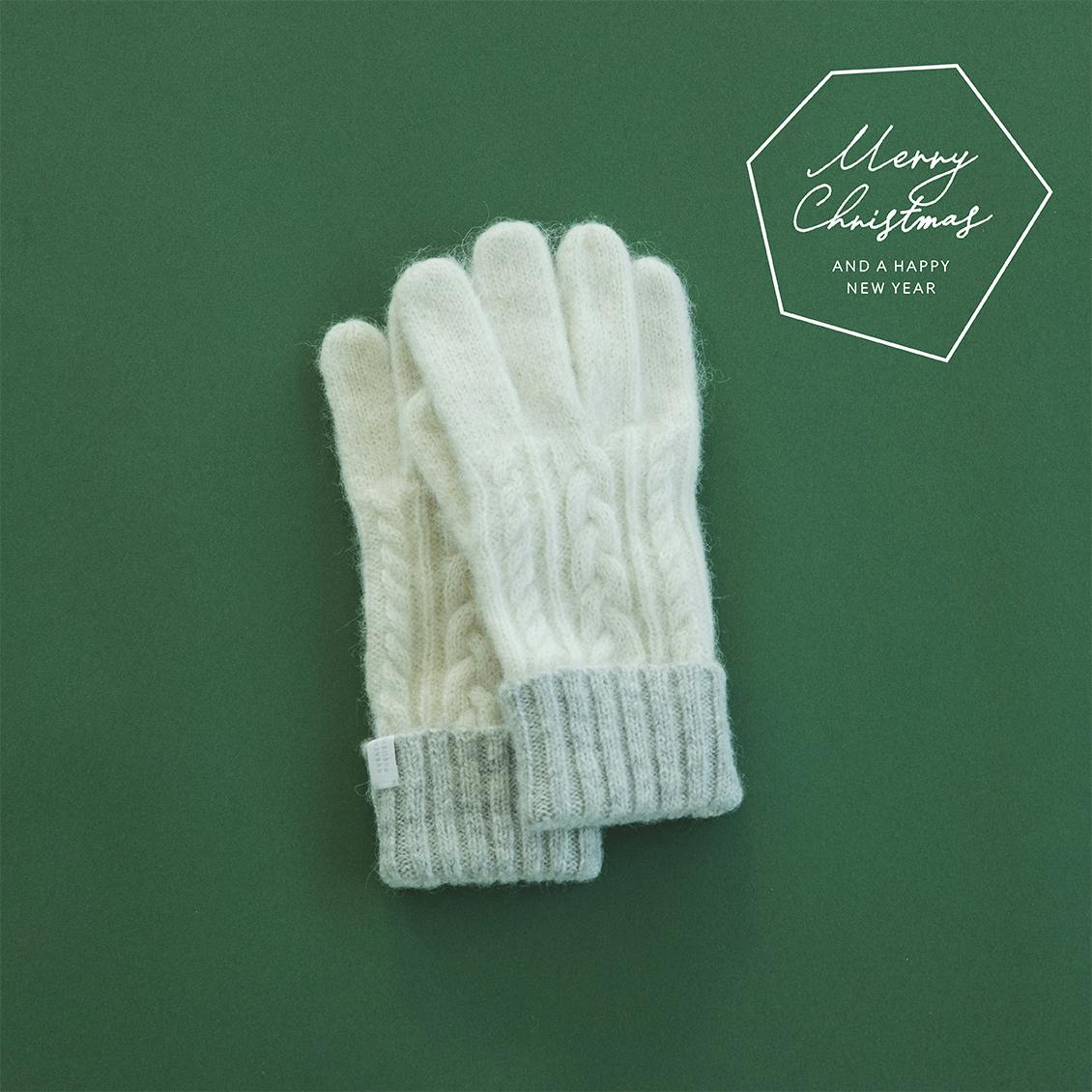 【クリスマス限定ギフトバッグ】ケーブル編みの手袋