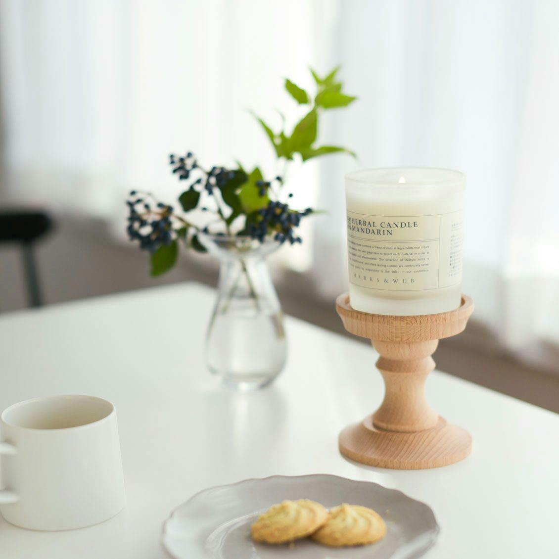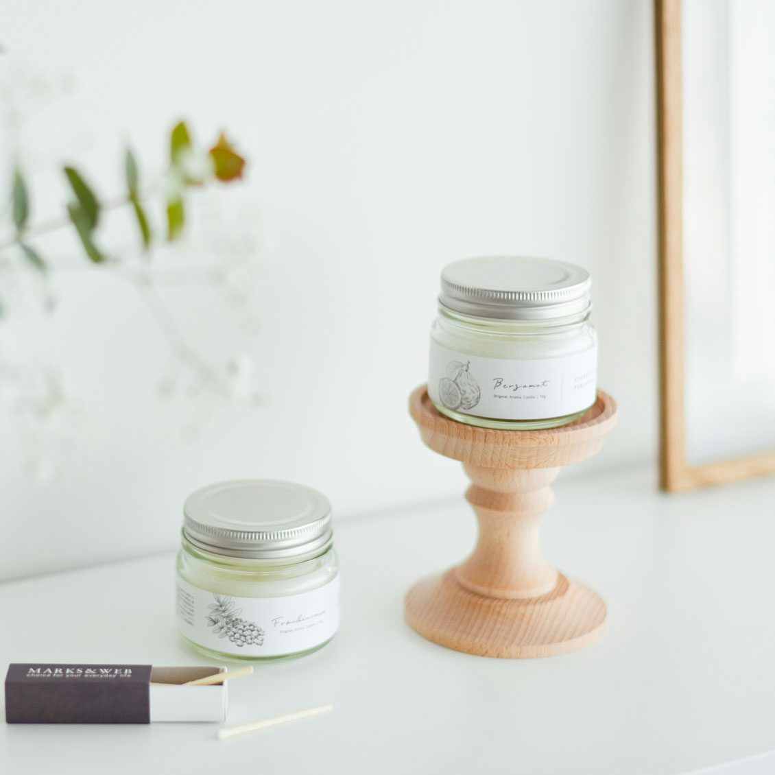 少し小ぶりなサイズ感は、手のひらサイズのオリジナルキャンドルと相性抜群。