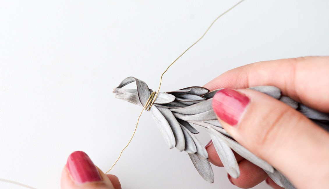 好みの長さまで巻き付け終えたら完成! 端部にループをつくり、壁に引っ掛けて飾ります。