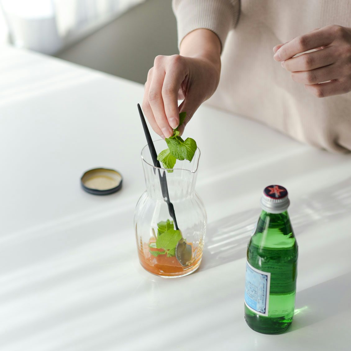 口が広いから、直接フルーツやハーブを入れてそのままドリンク作りもできちゃいます。