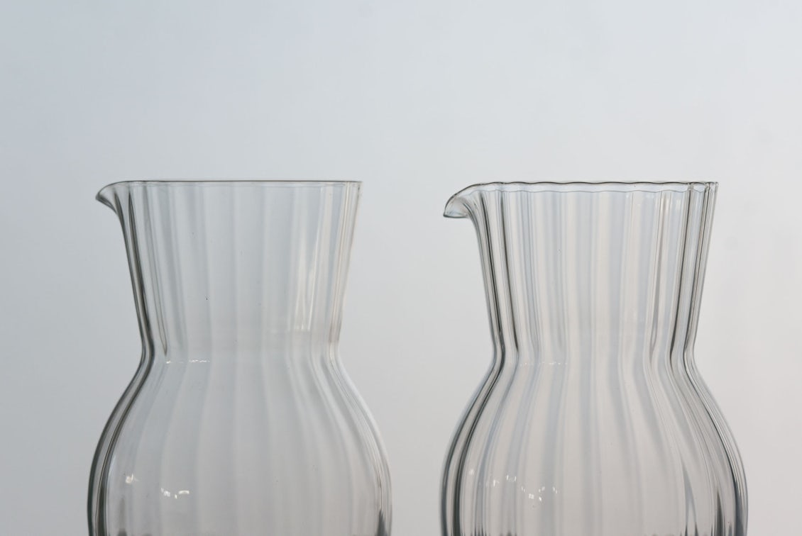 ほっと一息つきたい金曜夜の “わたし時間” をイメージした、当店オリジナルの脚付きグラス。今回、そのグラスと一緒に使いたい「小ぶりなカラフェ」をつくりました。