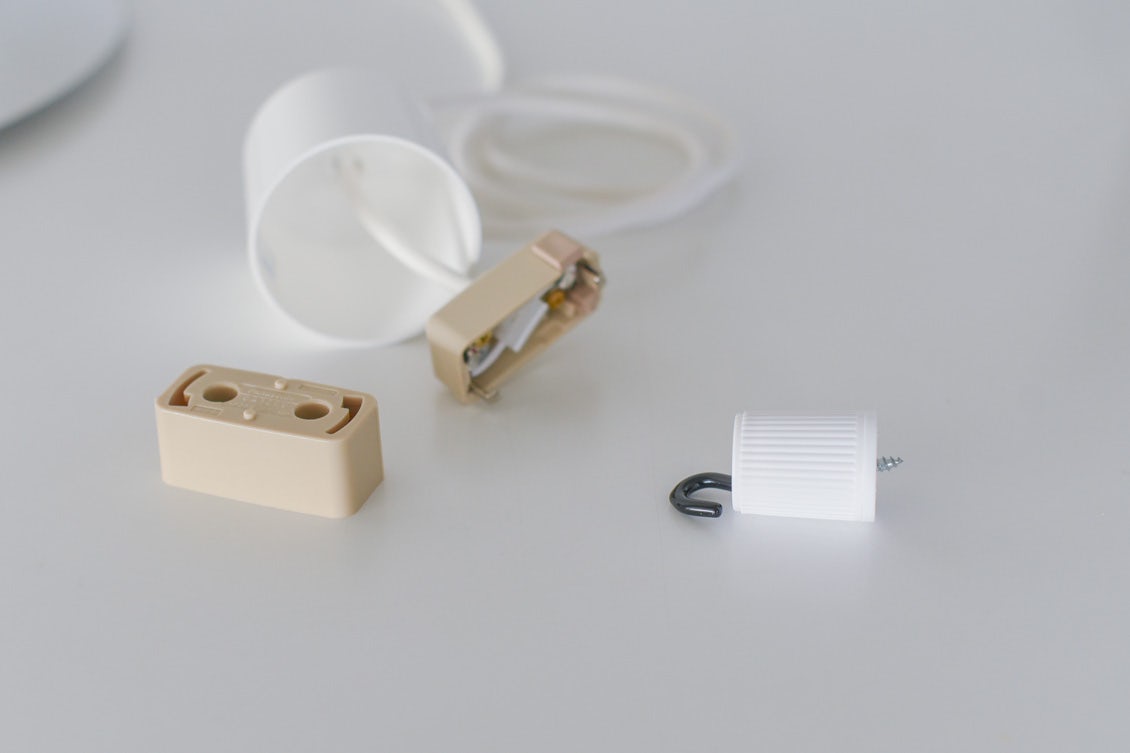 ・付属品の「天井用ネジフック(コードハンガー)」はネジで壁に固定をする仕様になっているため、賃貸物件の方は家電量販店等で販売している「コードクリップ」等を使用した長さの調整をおすすめいたします。(下記の写真は一例です)