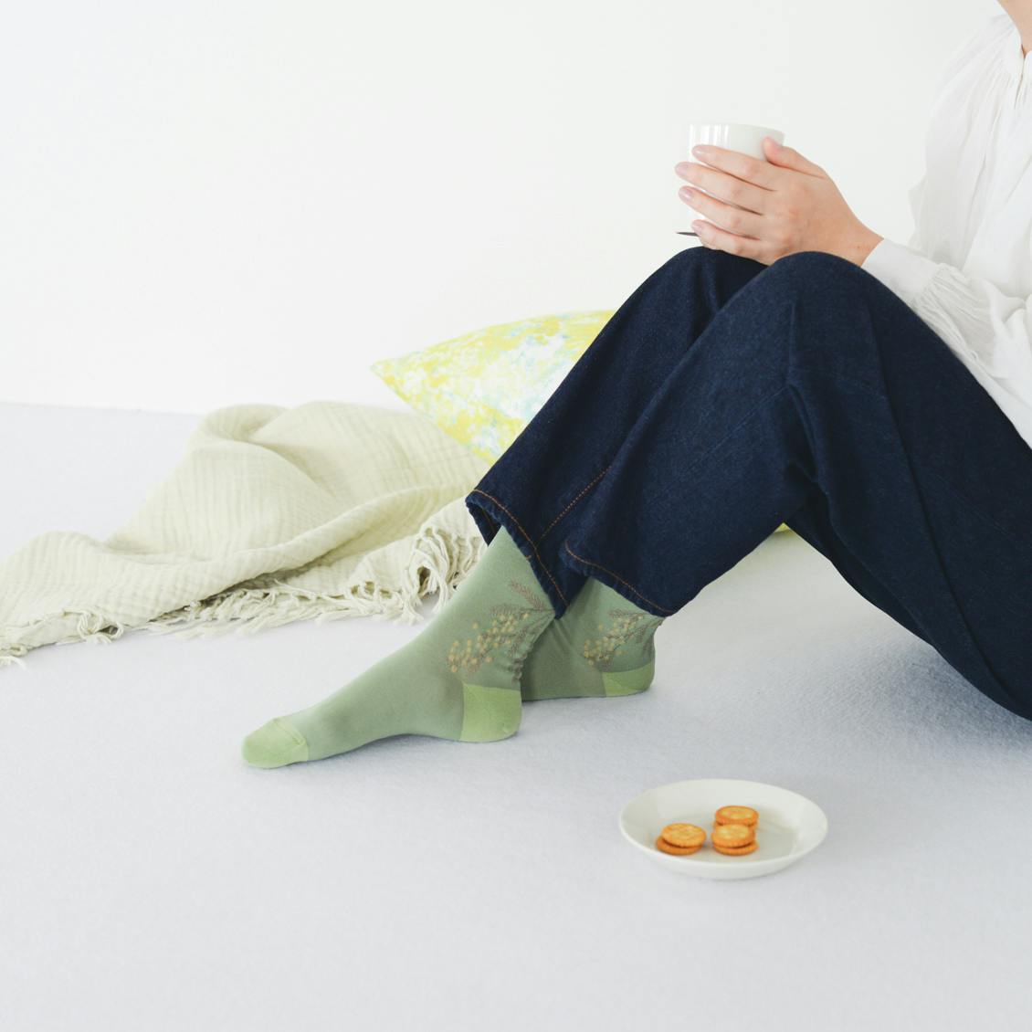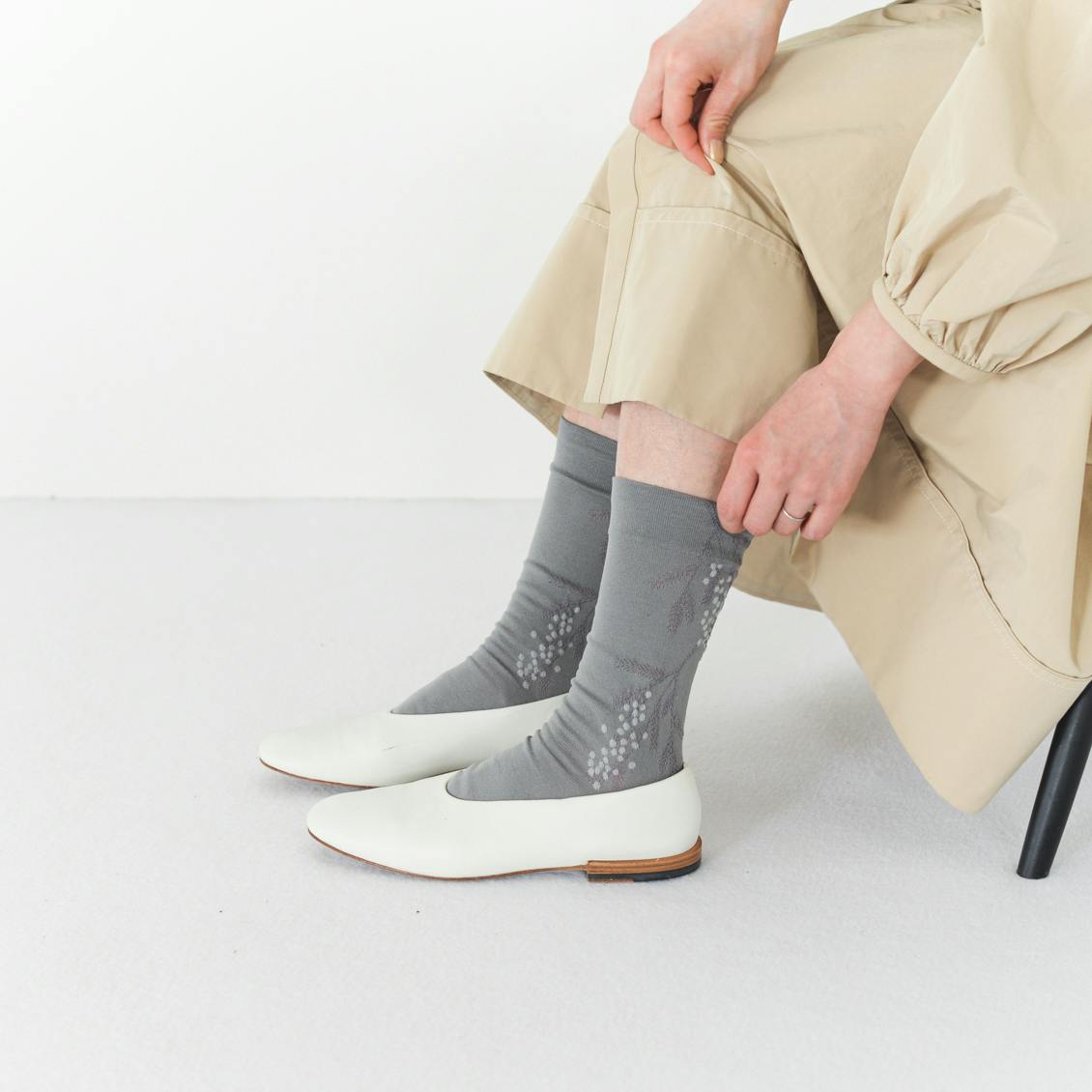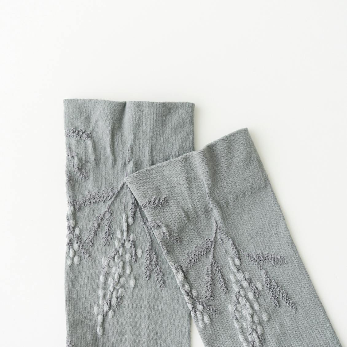ミモザ柄の靴下 ( グレージュ / ダークグレー / グリーン )