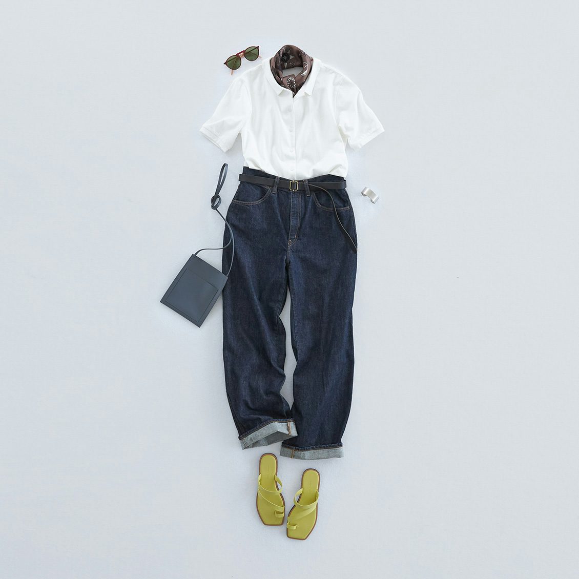 主役にも脇役にもなるオールマイティーな「ホワイト」は、スッキリしたボトムスに合わせれば、きれいめなブラウスに。