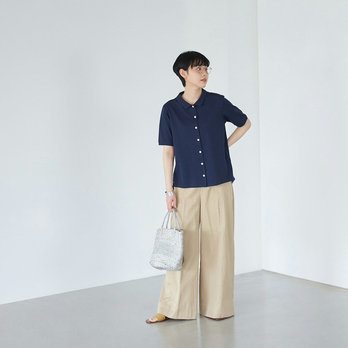 暑い日でもさらりと楽チン、それでいてブラウスのようなきちんと感があるアイテムです。